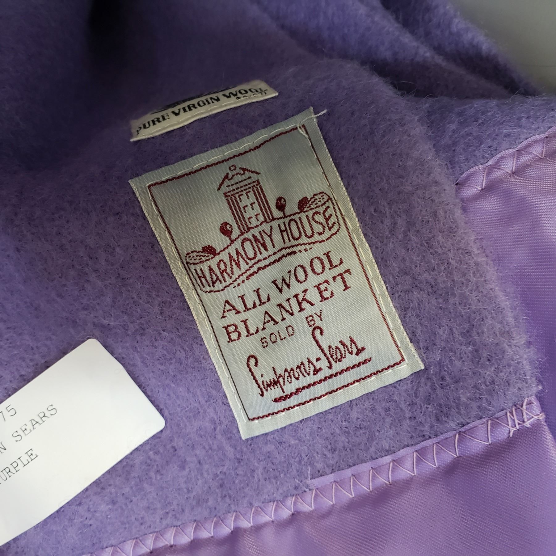 HARMONY HOUSE SIMPSON SEARS PURE VIRGIN WOOL PURPLE BLANKET
