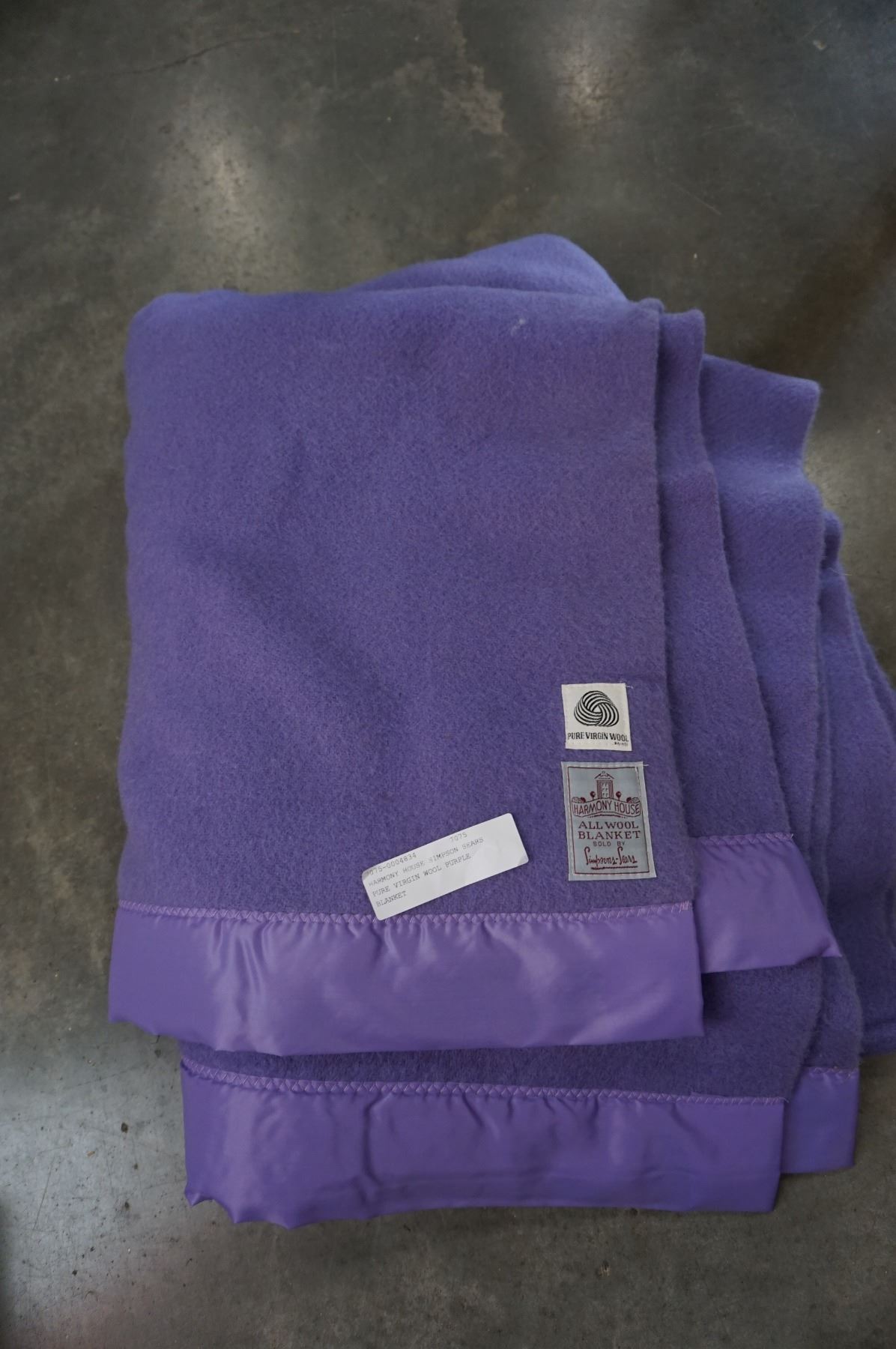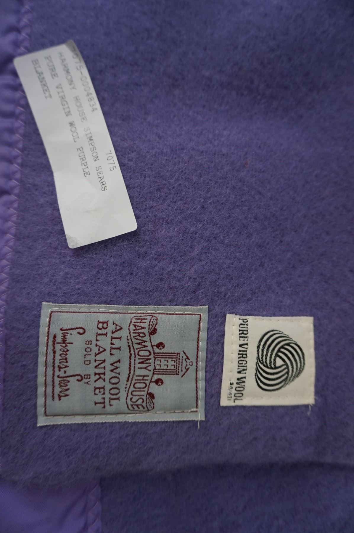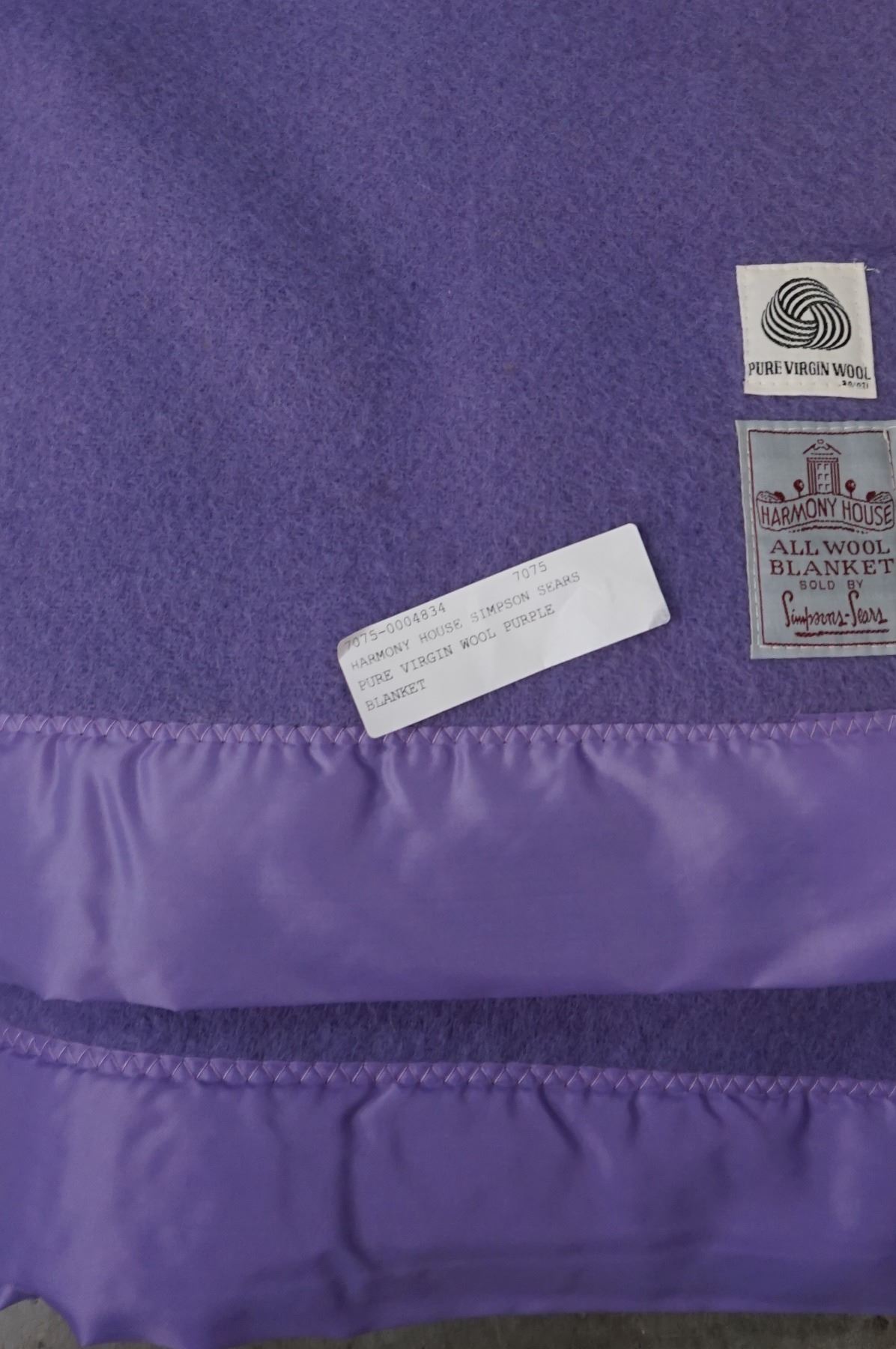HARMONY HOUSE SIMPSON SEARS PURE VIRGIN WOOL PURPLE BLANKET