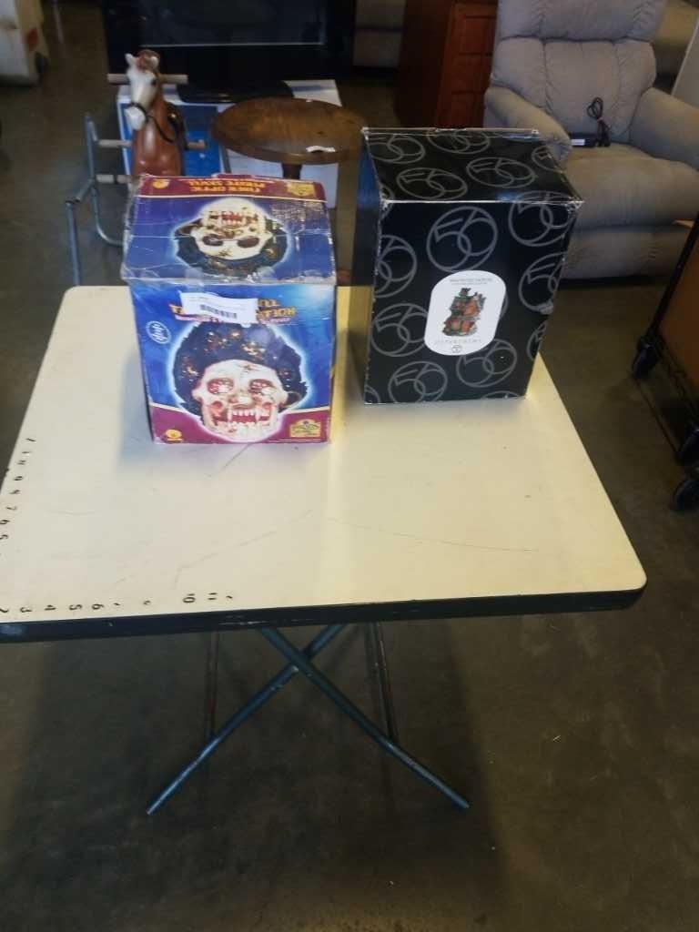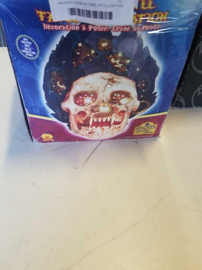 HAUNTED HOUSE W/ FIBRE OPTIC LIGHTING AND PIRATE SKULL TABLE DECORATION