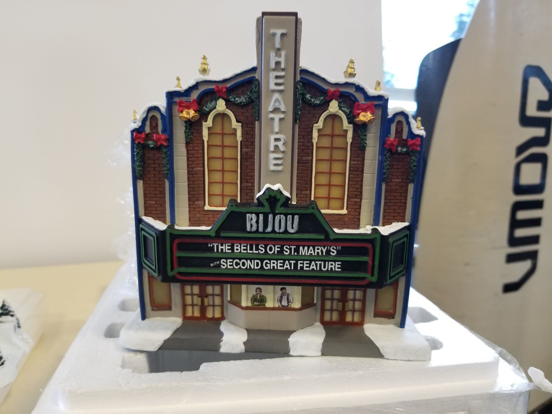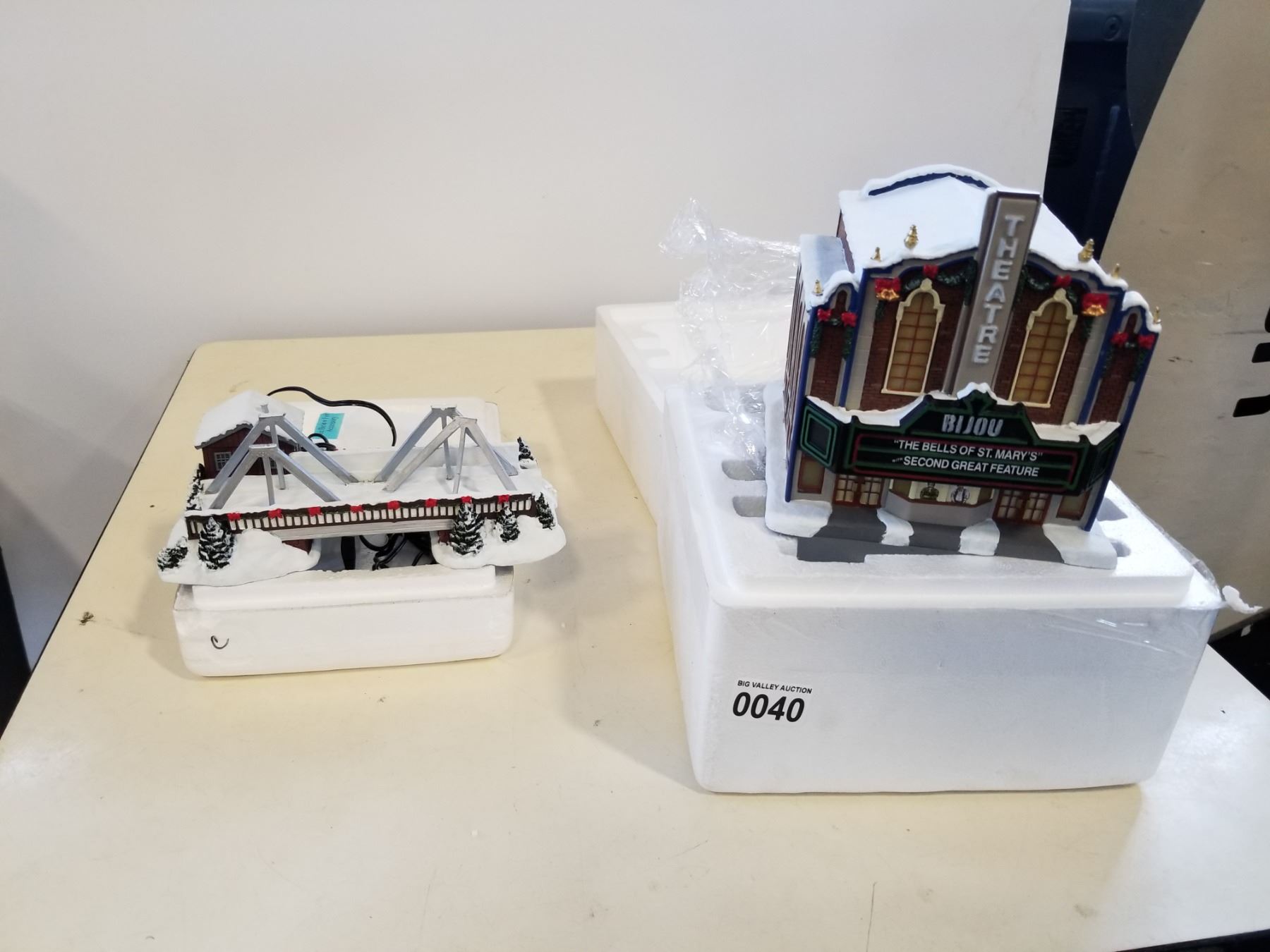 HAWTHORNE VILLAGE BIJOU THEATER AND DAMAGED BEDFORD FALLS BRIDGE