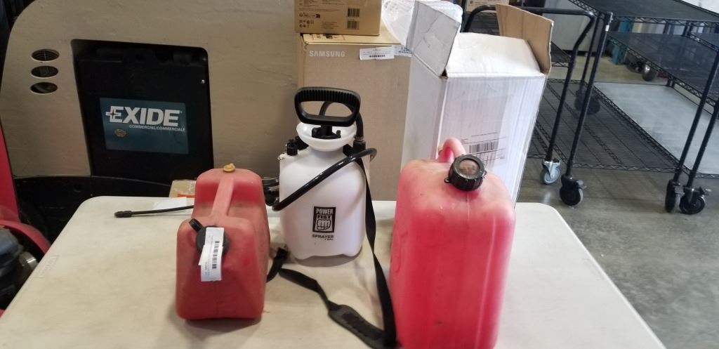 HDX AND POWER FIST GARDEN SPRAYERS, 2 SMALL JERRY CANS