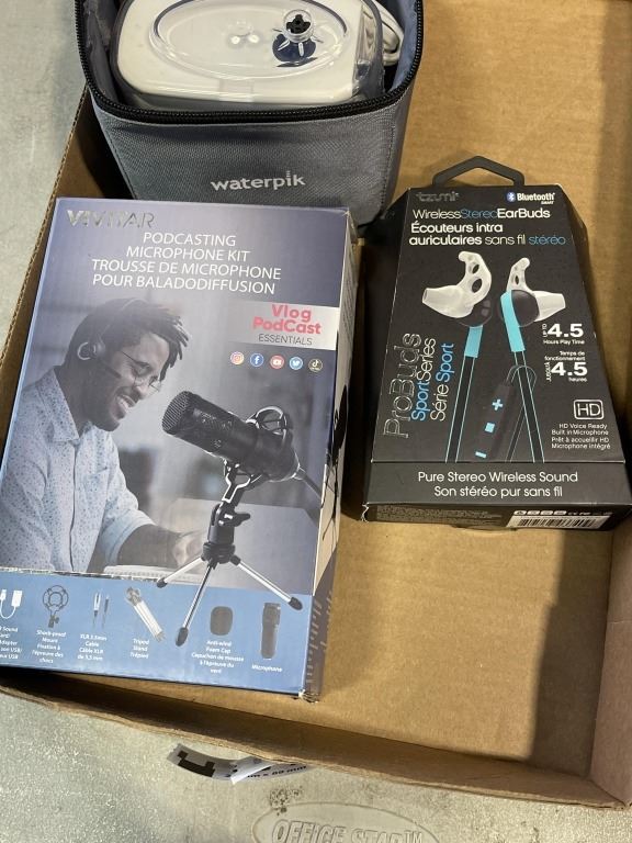 HEADPHONES, WATERPIK, PODCAST MICROPHONE