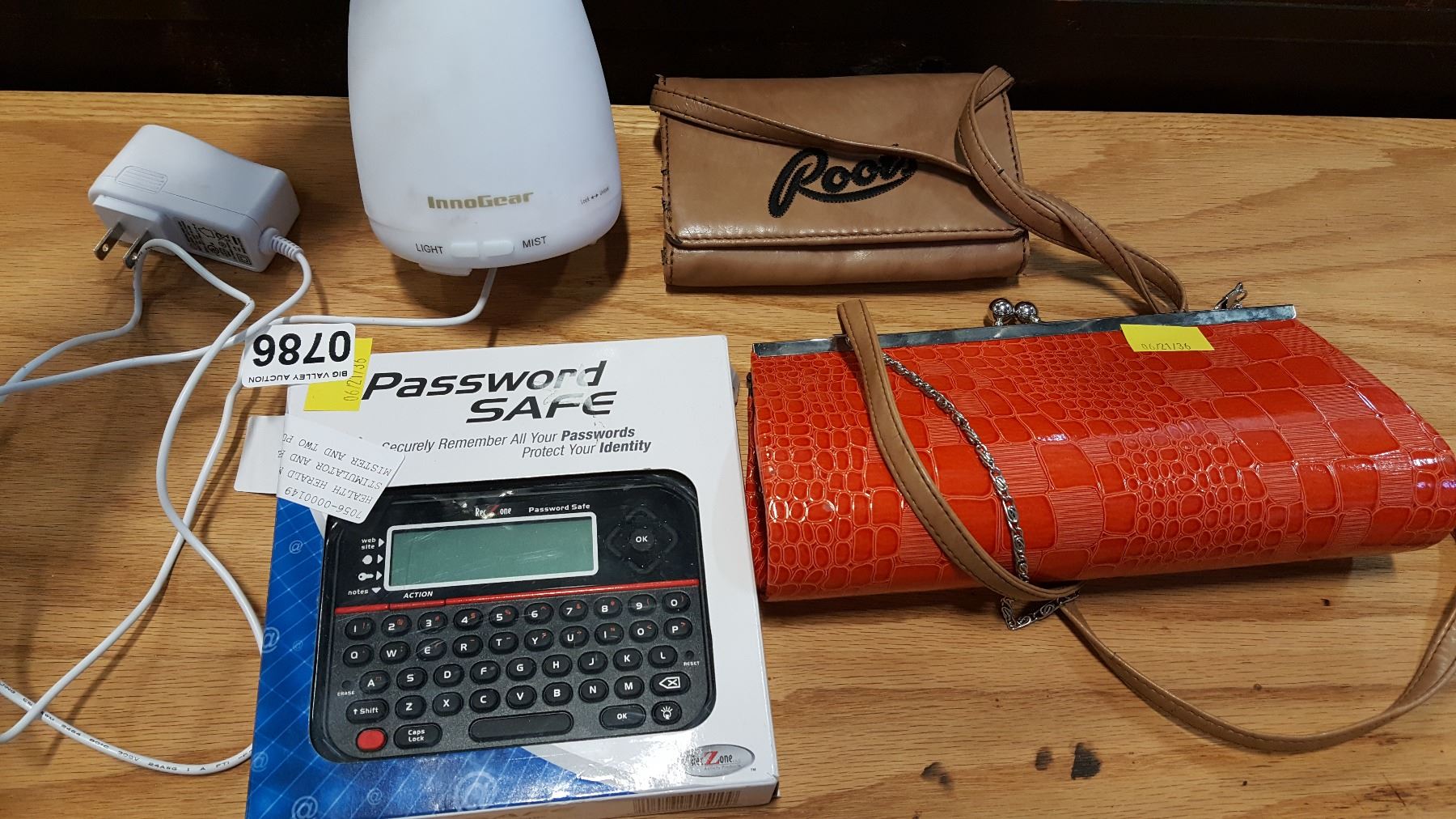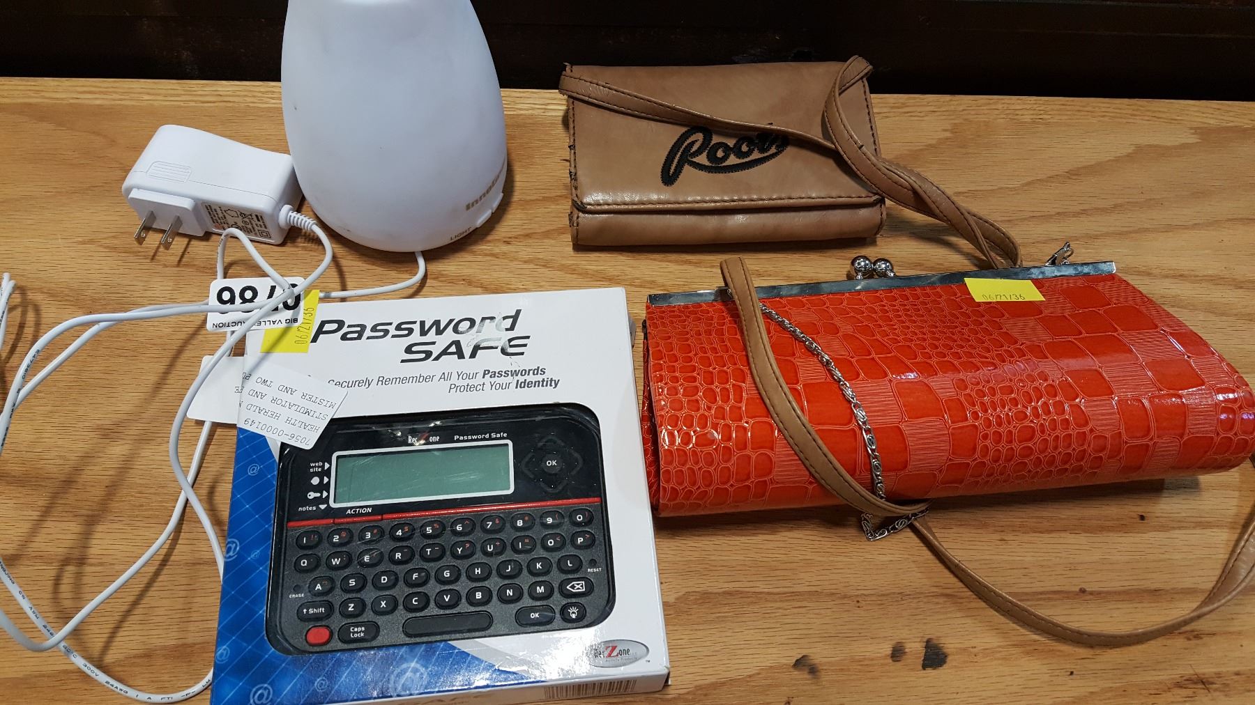 HEALTH HERALD MUSCLE STIMULATOR AND PASSWORD SAFE MISTER AND TWO PURSES