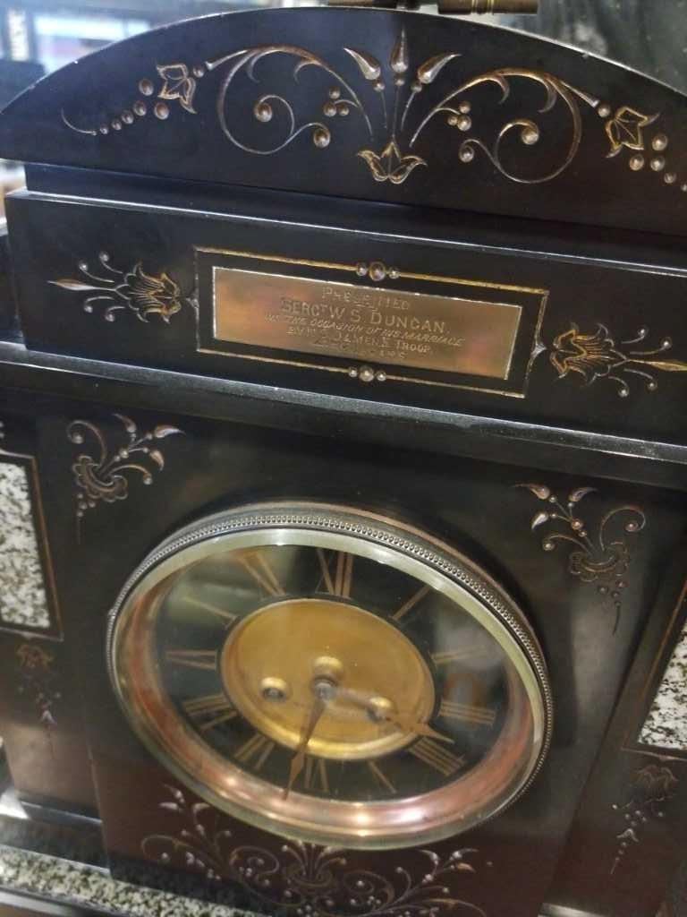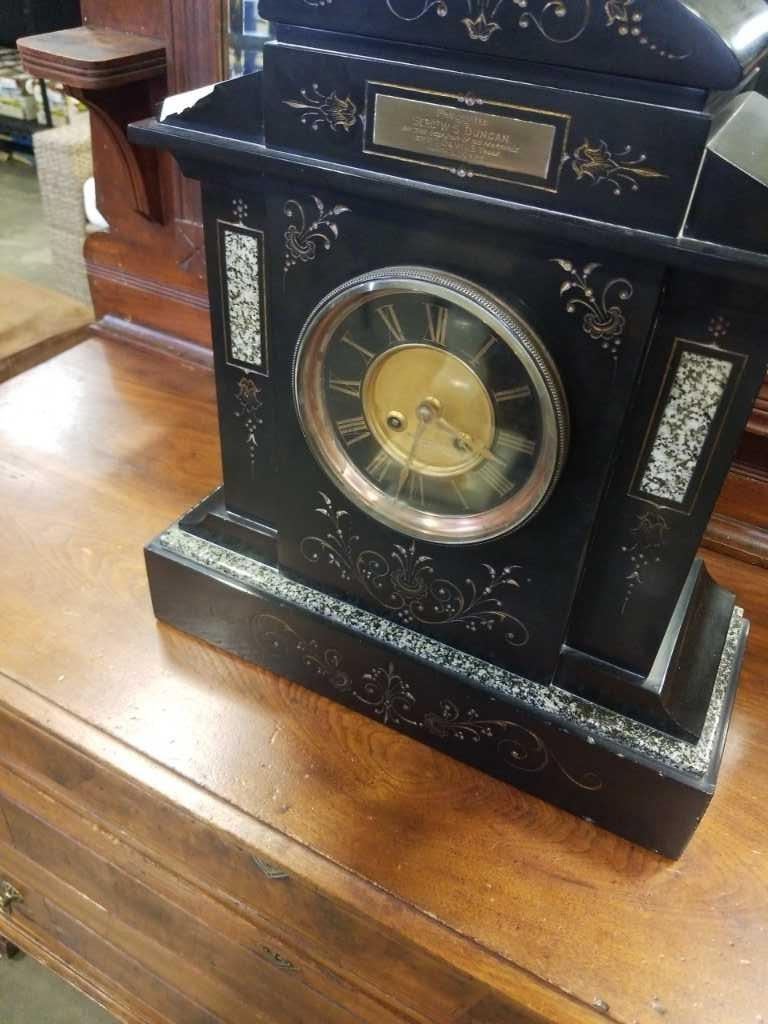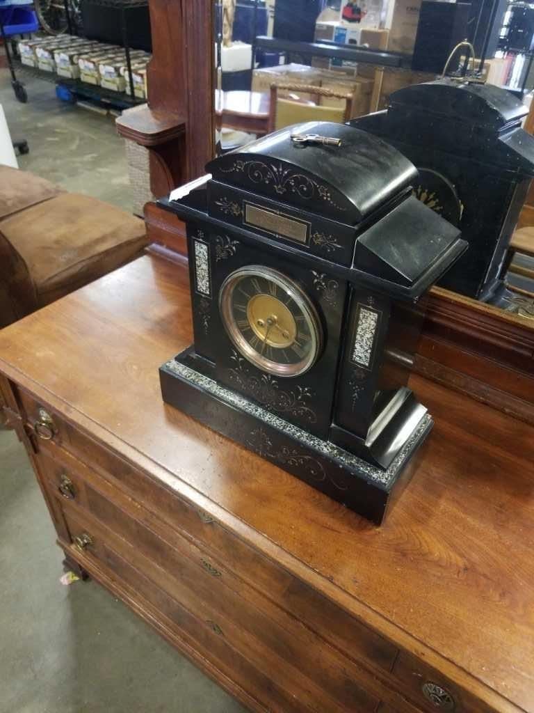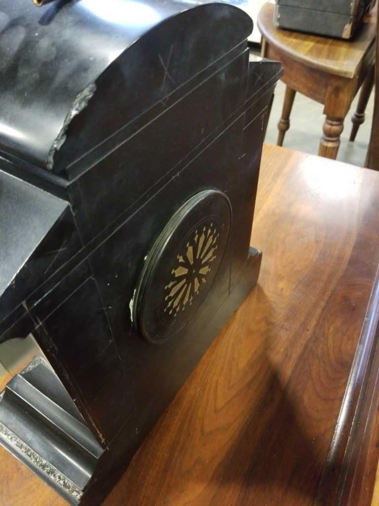 HEAVY BLACK STONE MANTLE CLOCK WITH KEY