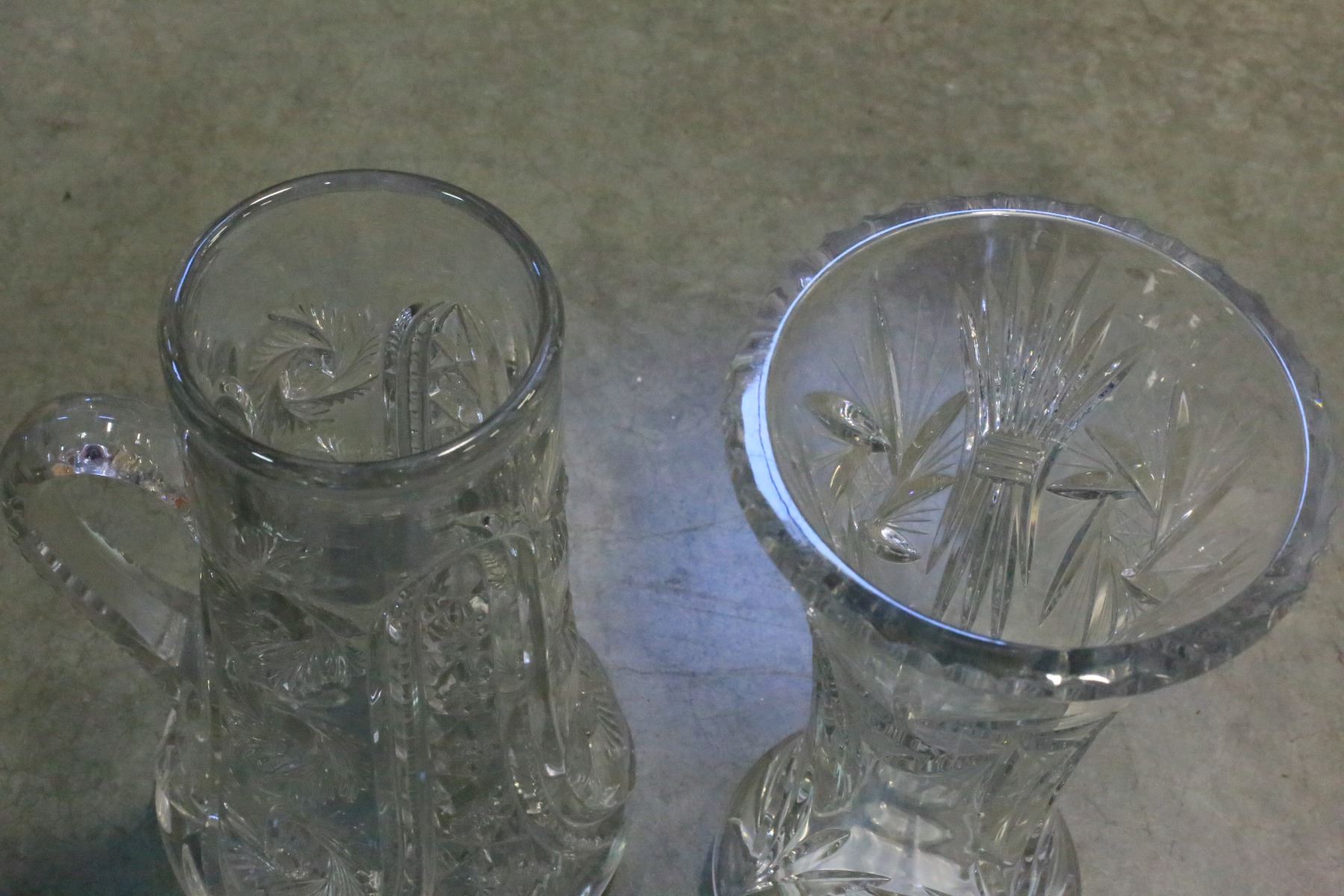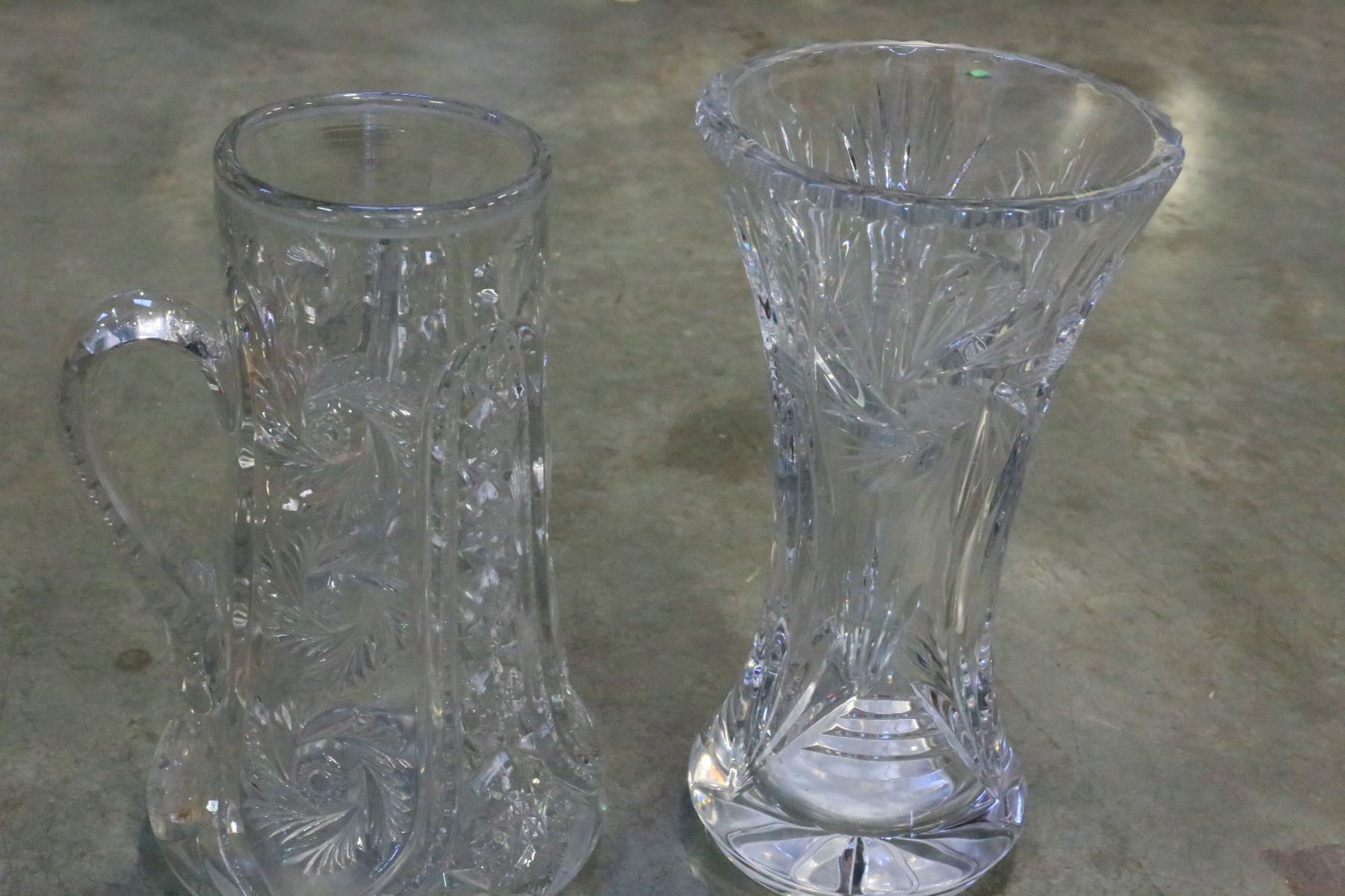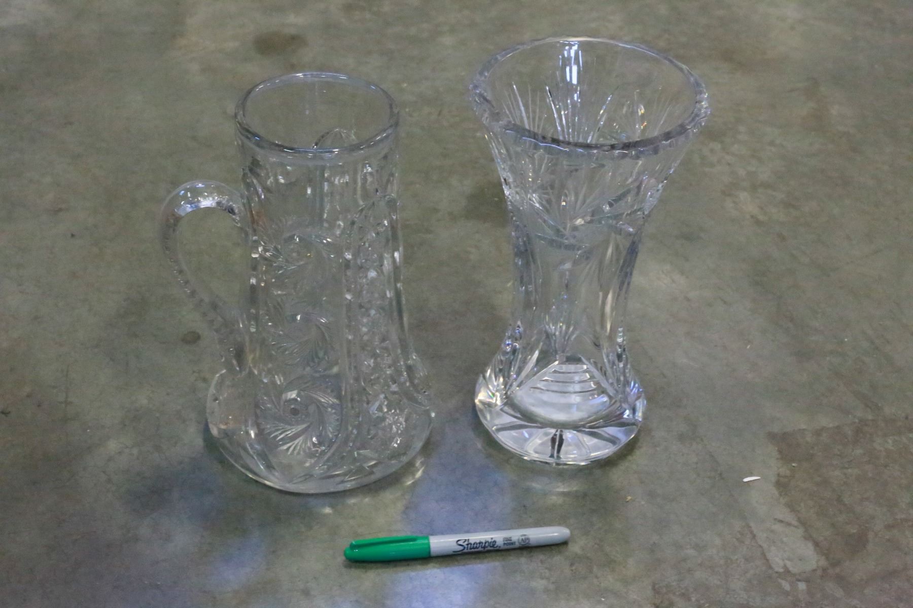 HEAVY CRYSTAL VASE AND HANDLED PITCHER
