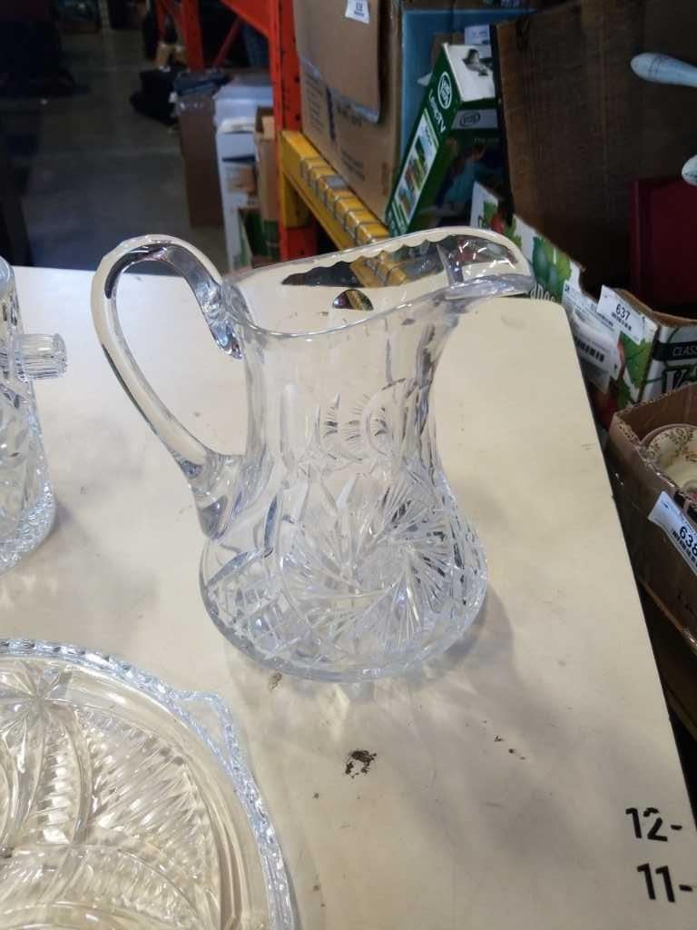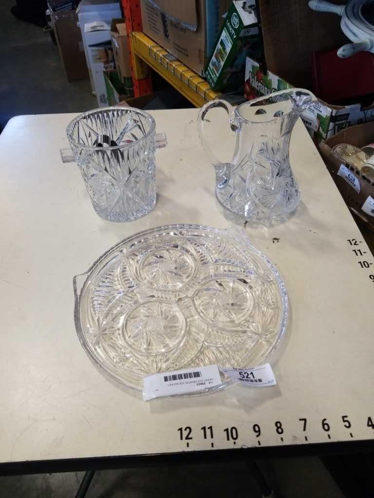 HEAVY CUT CRYSTAL ICE BUCKET, PITCHER, AND SERVING PLATE