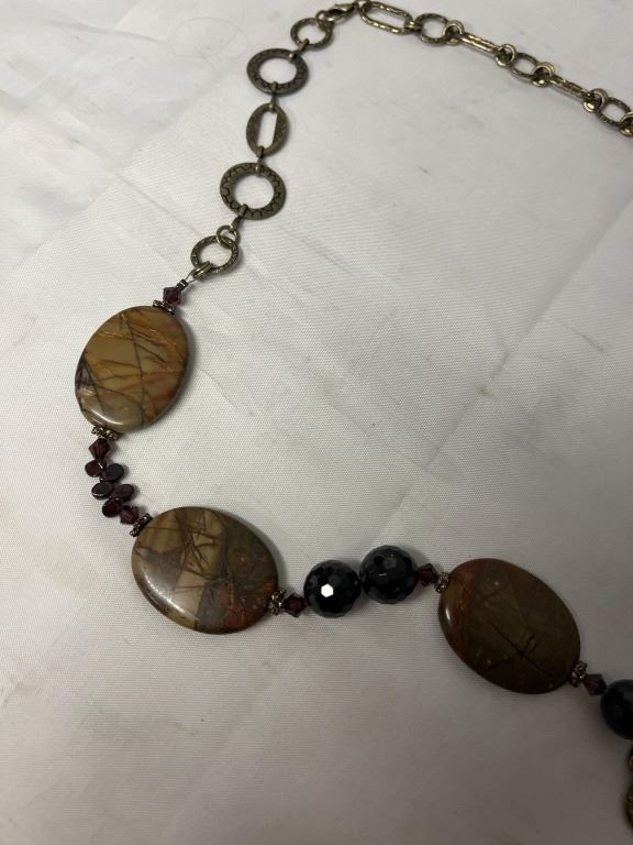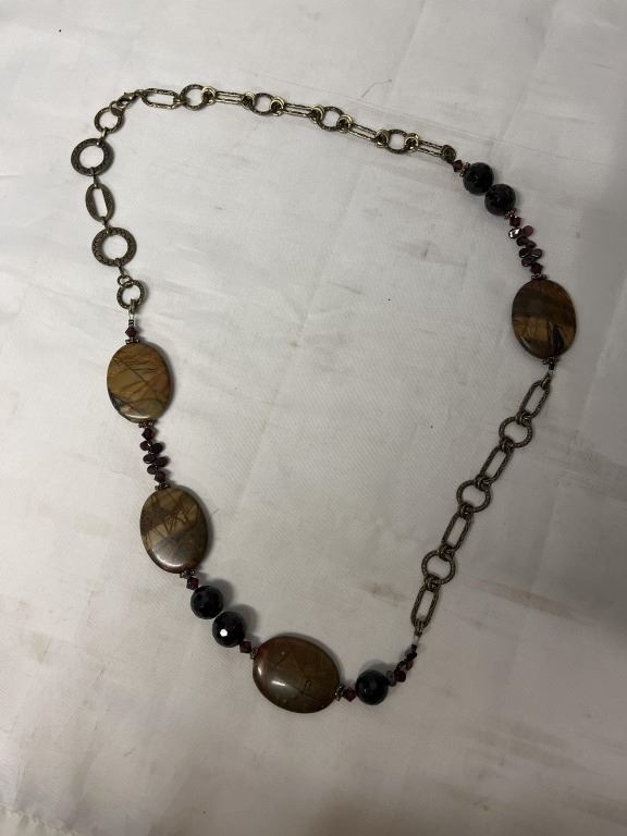 HEAVY METAL LINKS W/ AGATE STONES NECKLACE 31" LENGTH