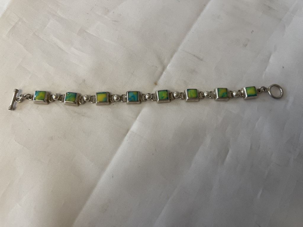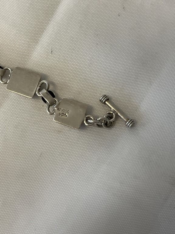 HEAVY SOLID STERLING SILVER W. STONES BRACELET MARKED MEXICO 925 20.4G TW