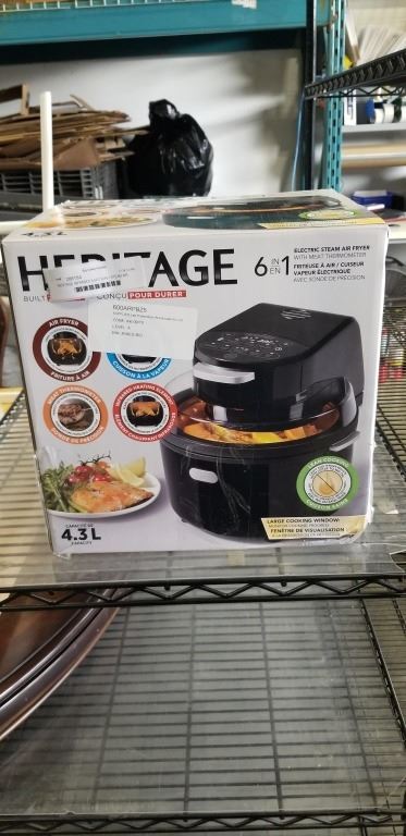 HERITAGE INFRARED 4.5QT 6-IN-1 STEAM AIR FRYER - TESTED WORKING, RETAIL $299