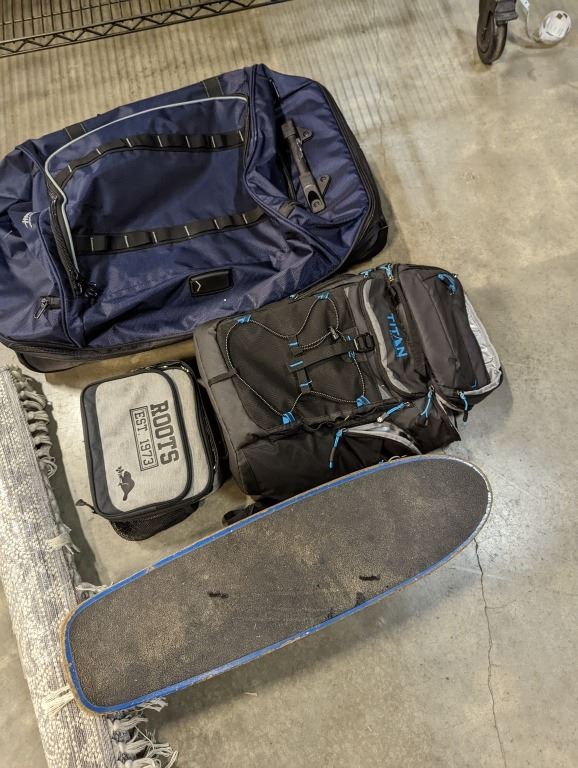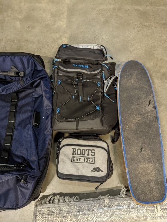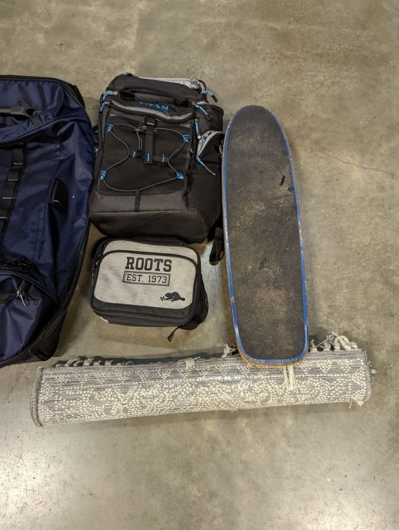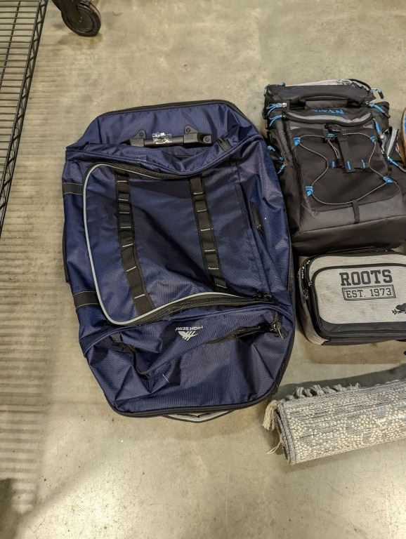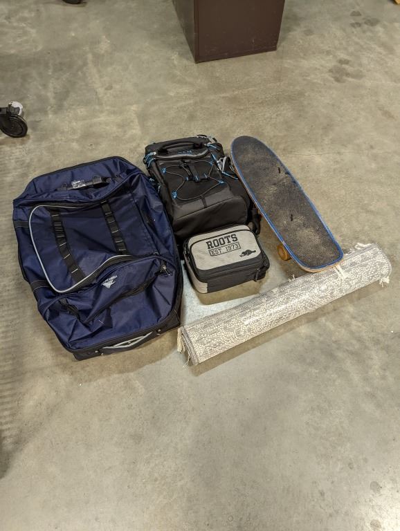 HIGH SIERRA DUFFLE BAG, TITAN COOLER, SKATEBOARD FLOOR MAT AND ROOTS COOLER