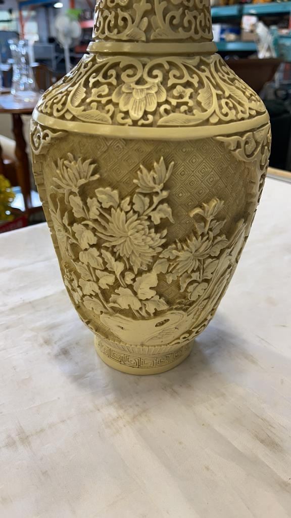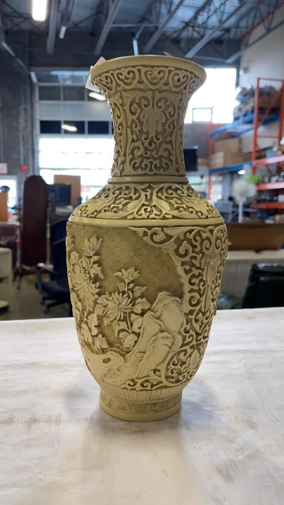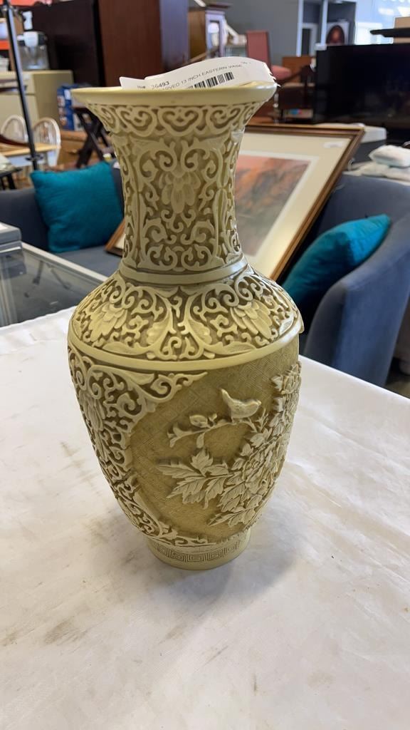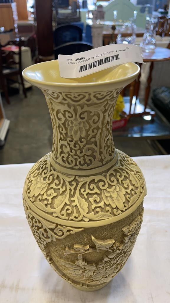 HIGHLY CARVED 13 INCH EASTERN VASE