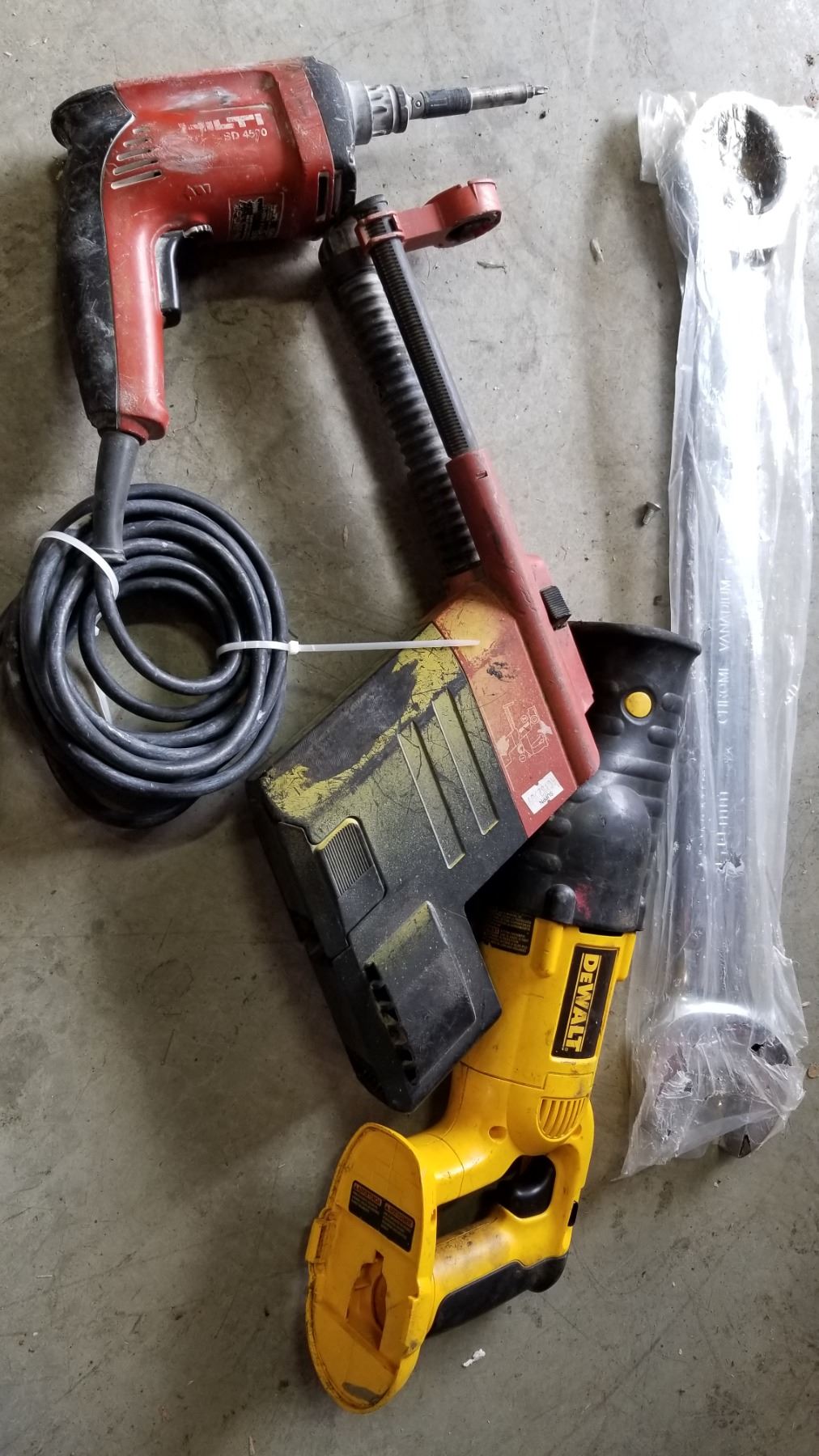 HILTI ELECTRIC DRILL, DEWALT CORDLESS DRILL AND 50MM WRENCH