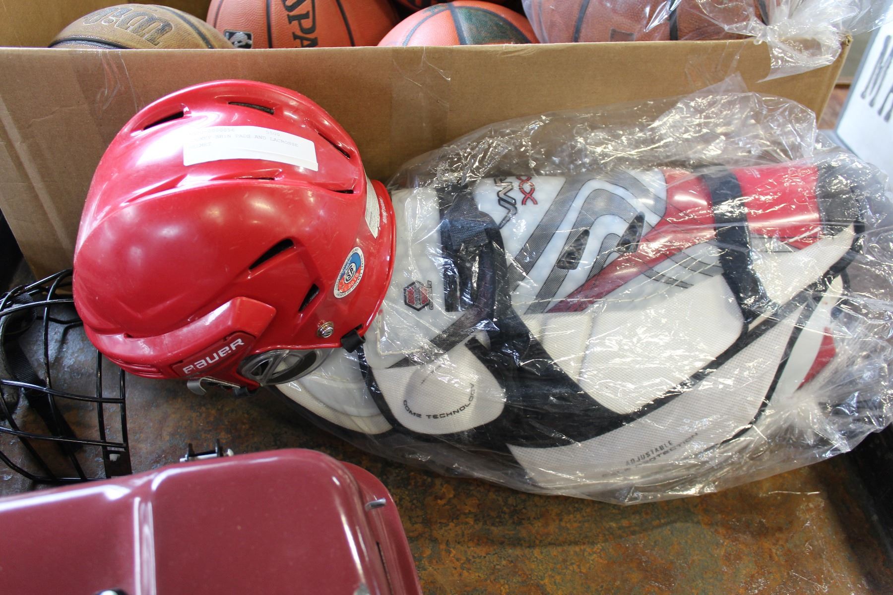 HOCKEY SHIN PADS AND LACROSSE HELMET