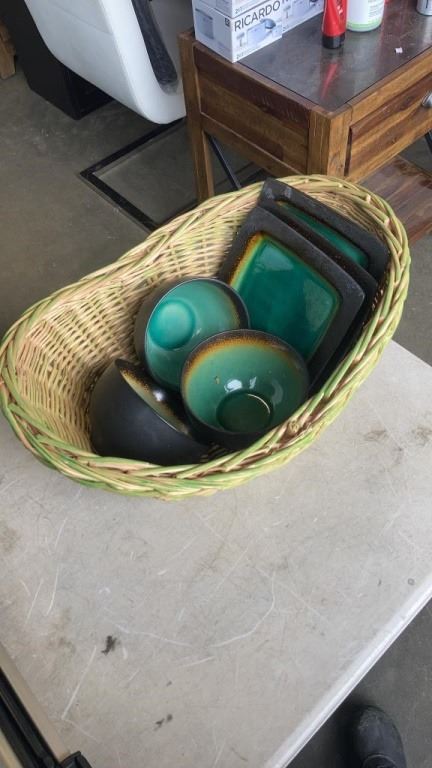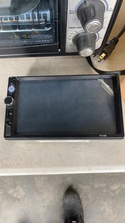 HOMETRENDS POTTERY DISHES, 7010B STEREO MONITOR, TOASTER OVEN AND TRIPOD