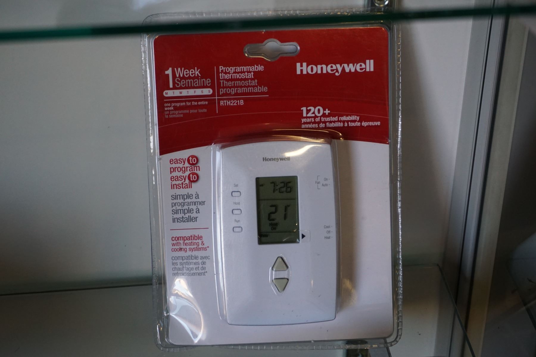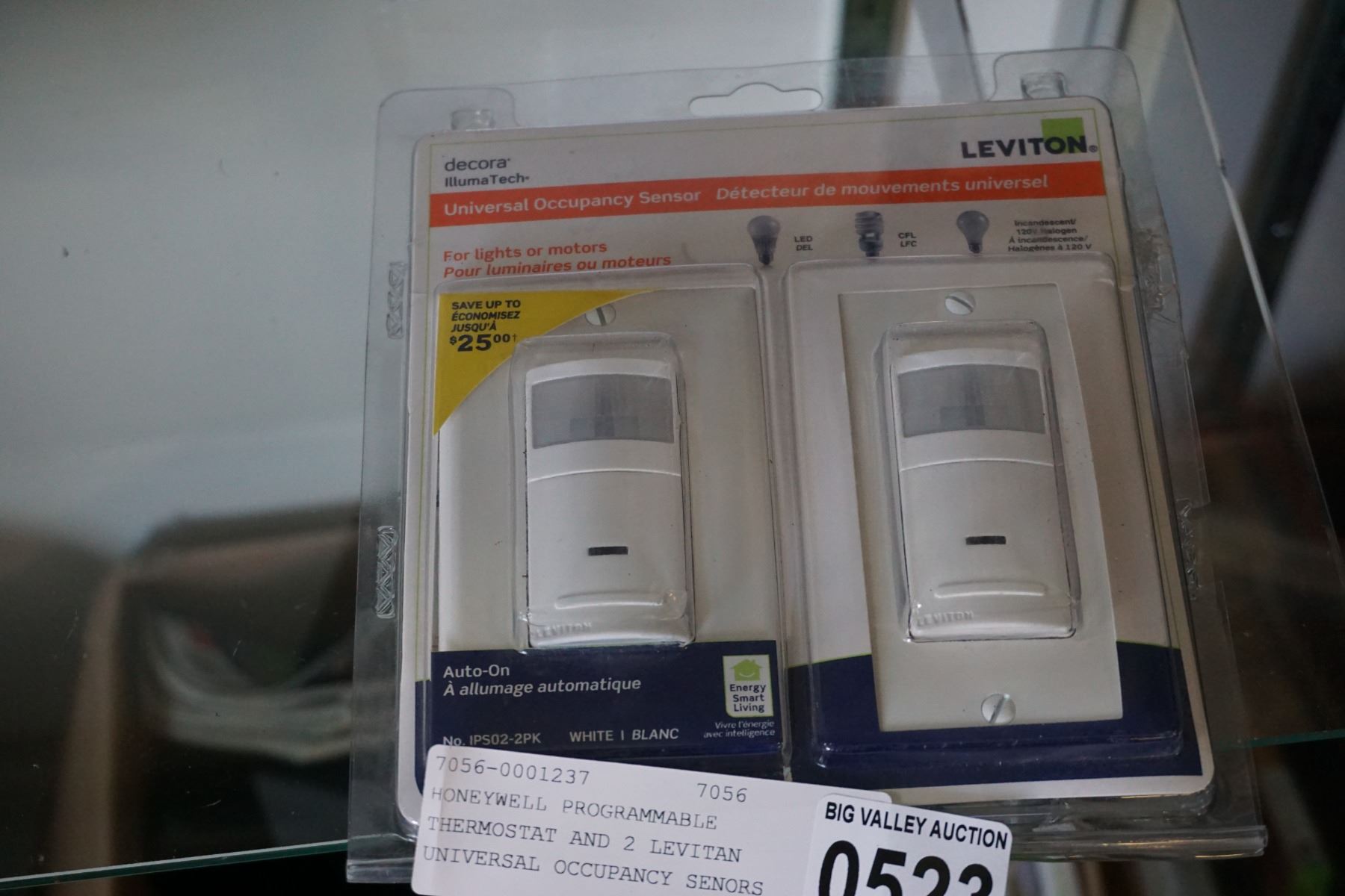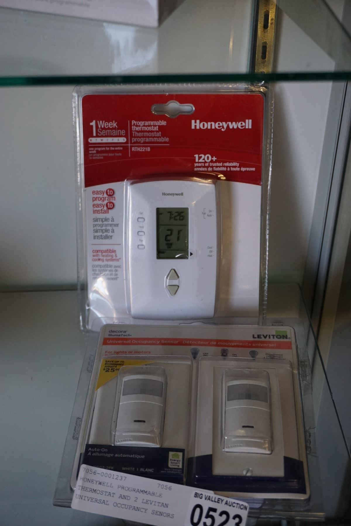 HONEYWELL PROGRAMMABLE THERMOSTAT AND 2 LEVITAN UNIVERSAL OCCUPANCY SENORS