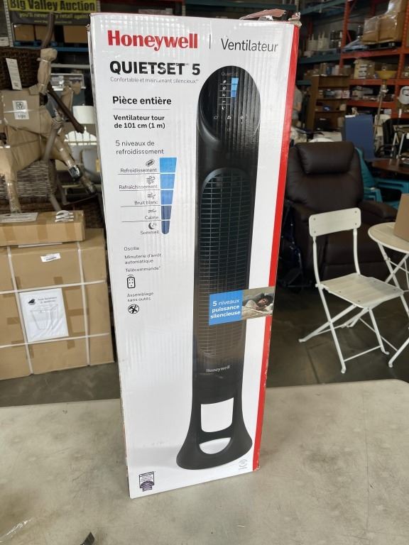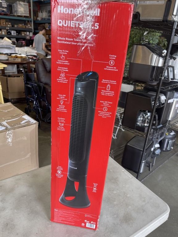 HONEYWELL QUIET SET 5 SPEED 40" OSCILLATING TOWER FAN - TESTED WORKING, RETAIL $217