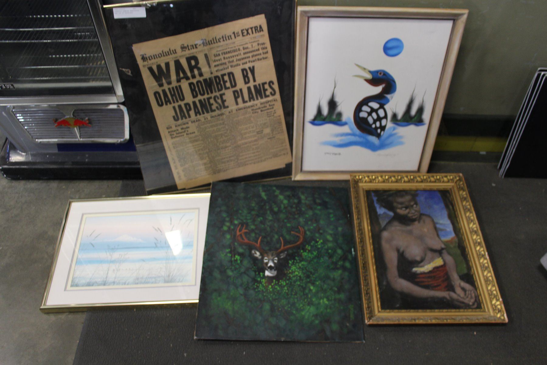 HONOLULU BOMBING NEWSPAPERS AND LOT OF PAINTINGS
