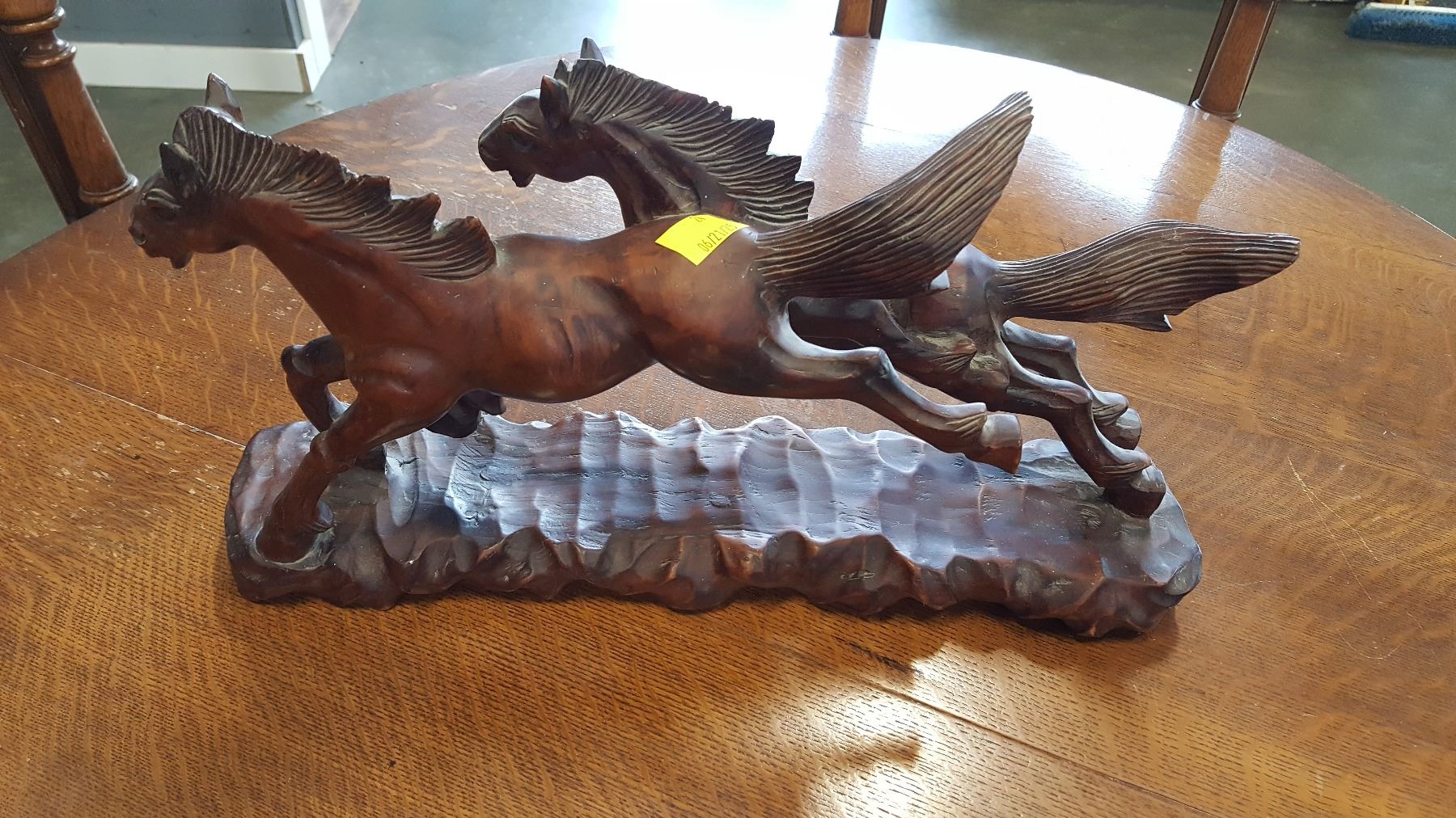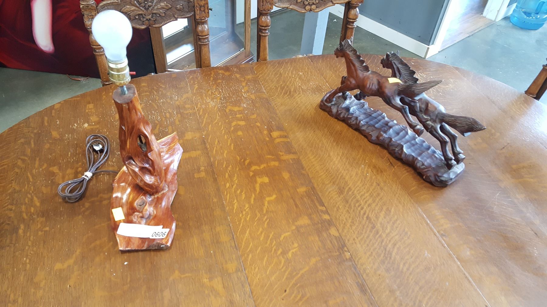 HORSE STATUE AND MIRRORED CLOCK W/ WOOD LAMP