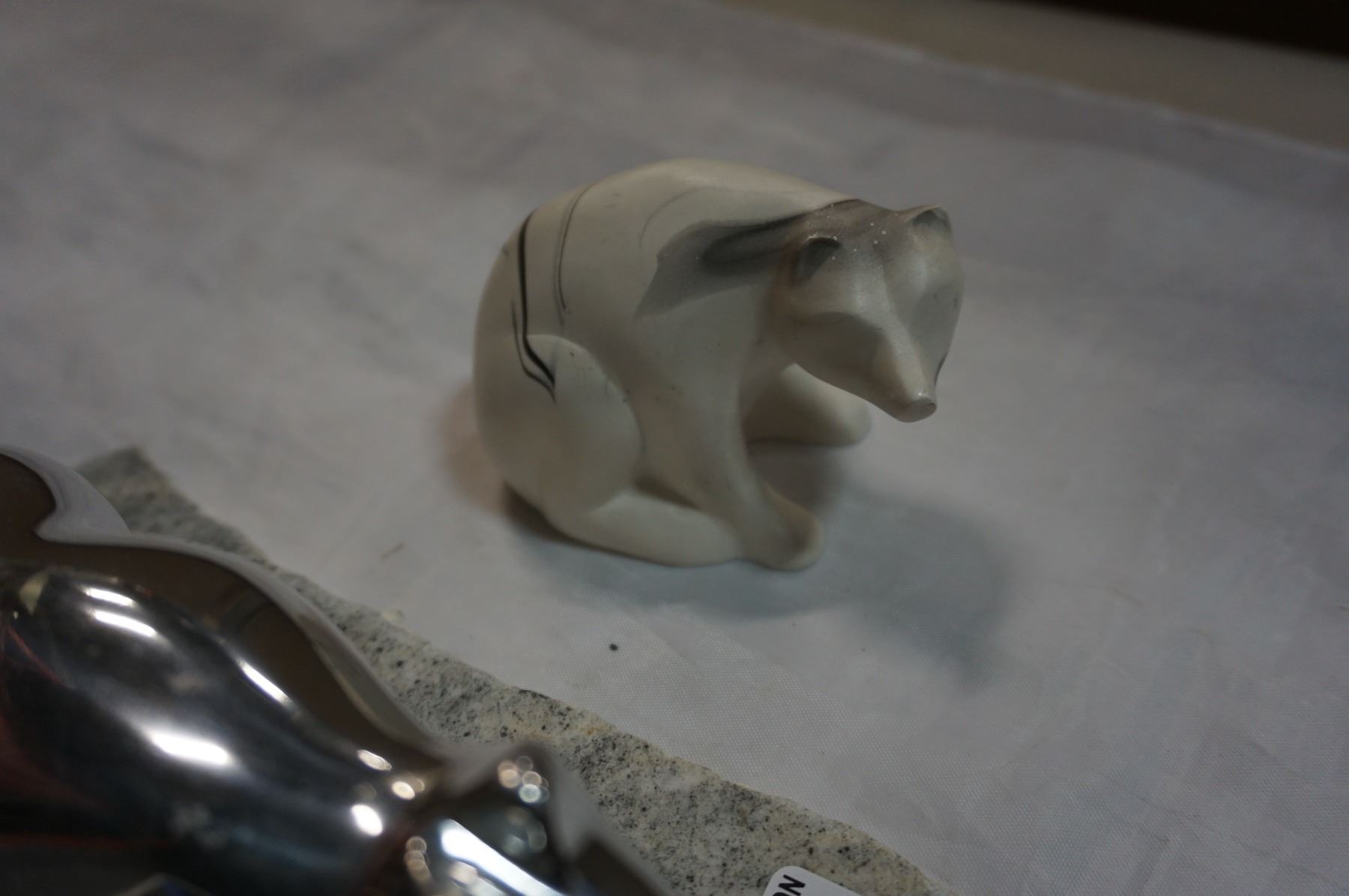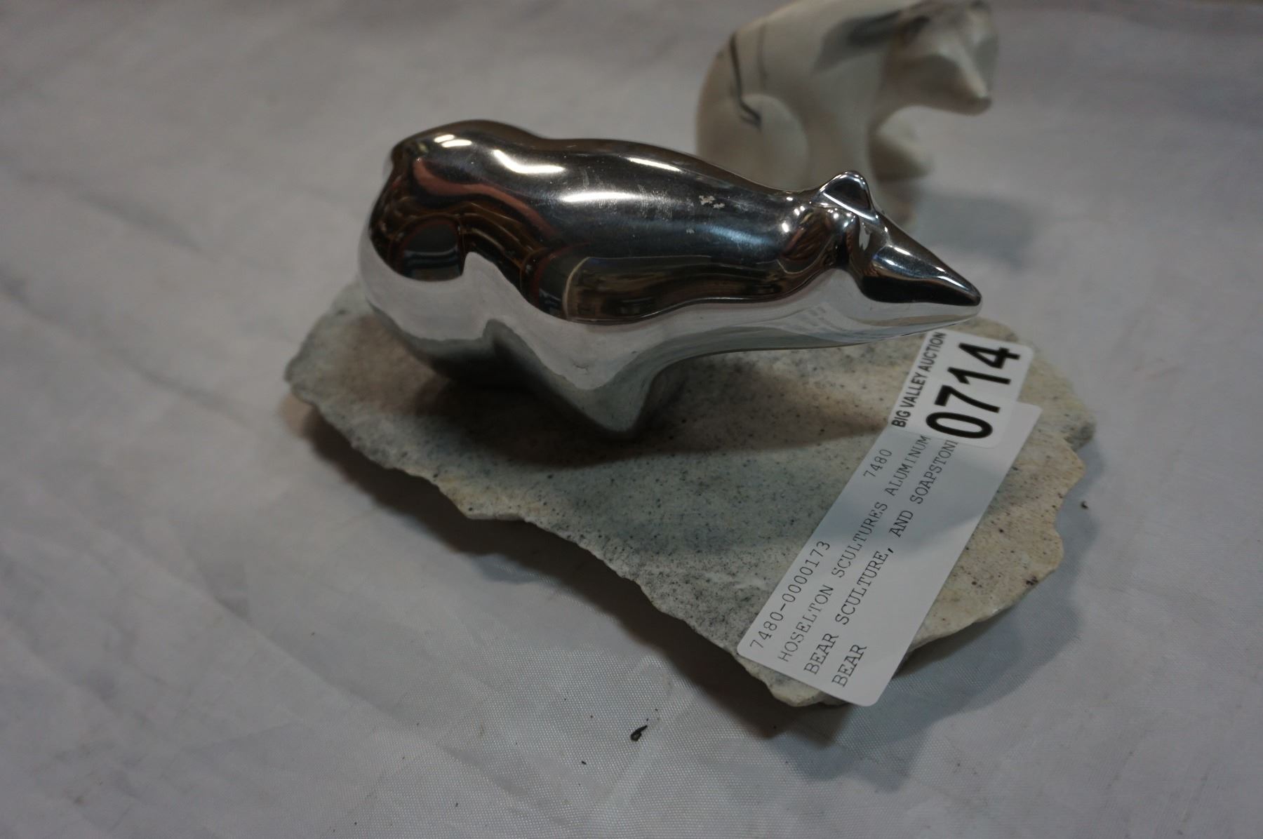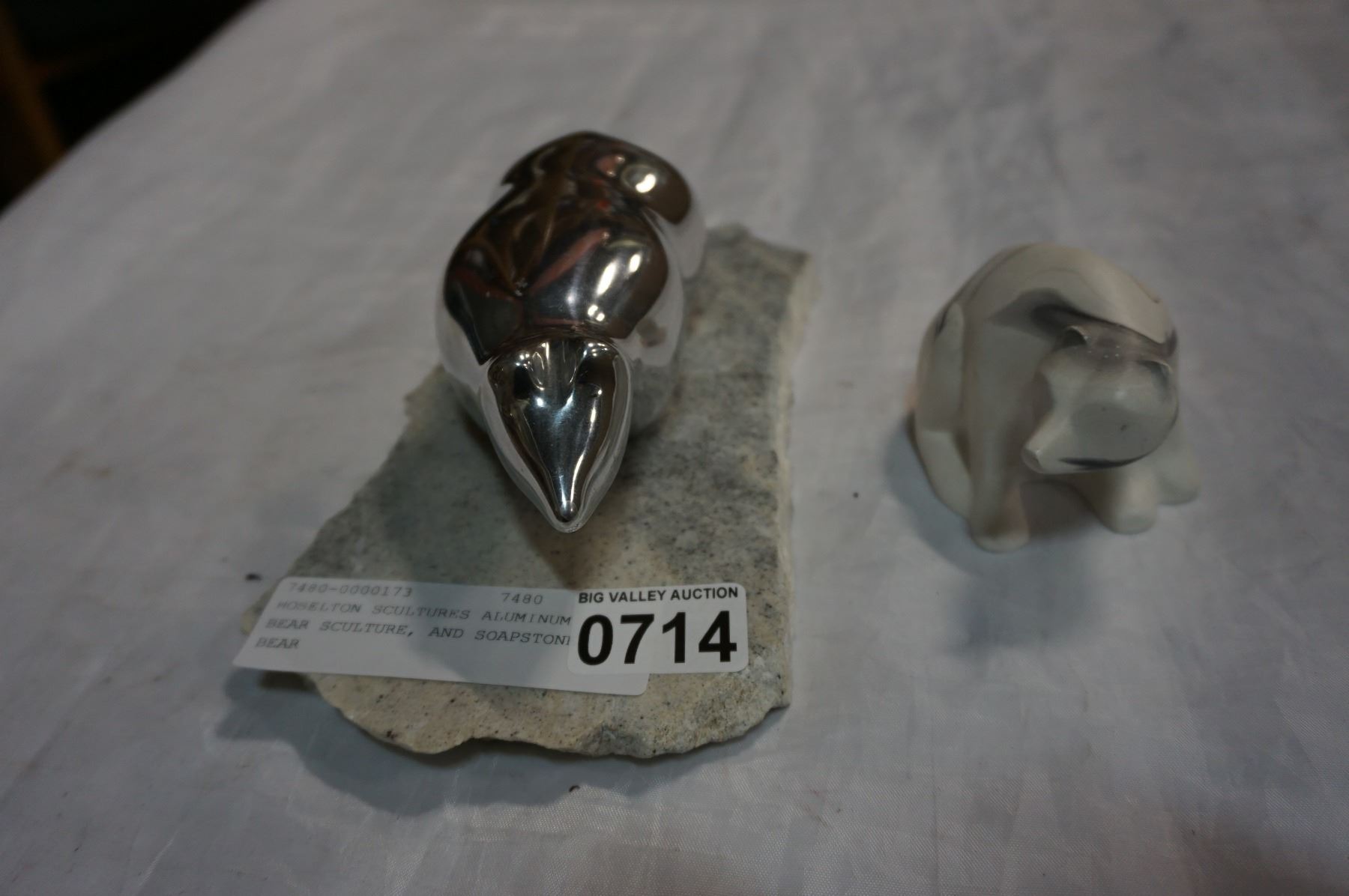 HOSELTON SCULPTURES ALUMINUM BEAR SCULPTURE, AND SOAPSTONE BEAR