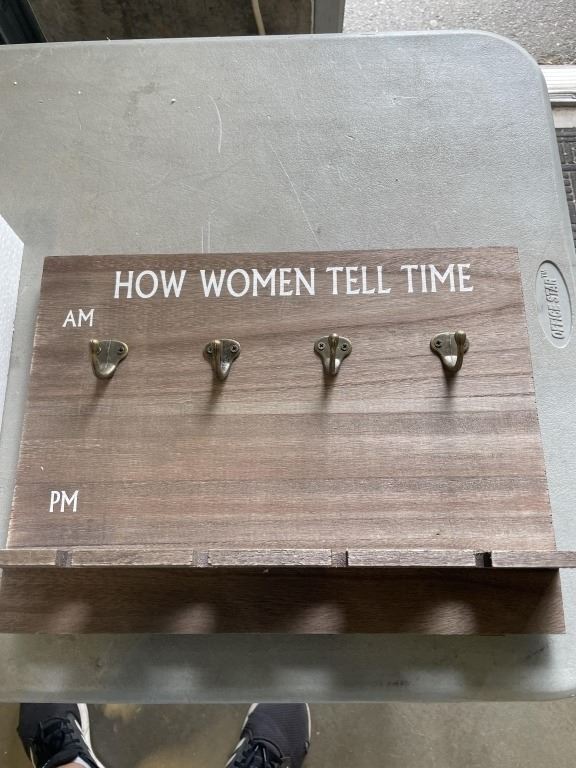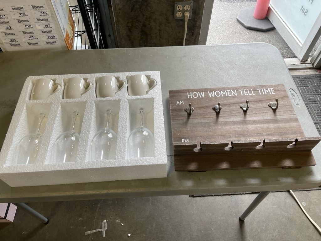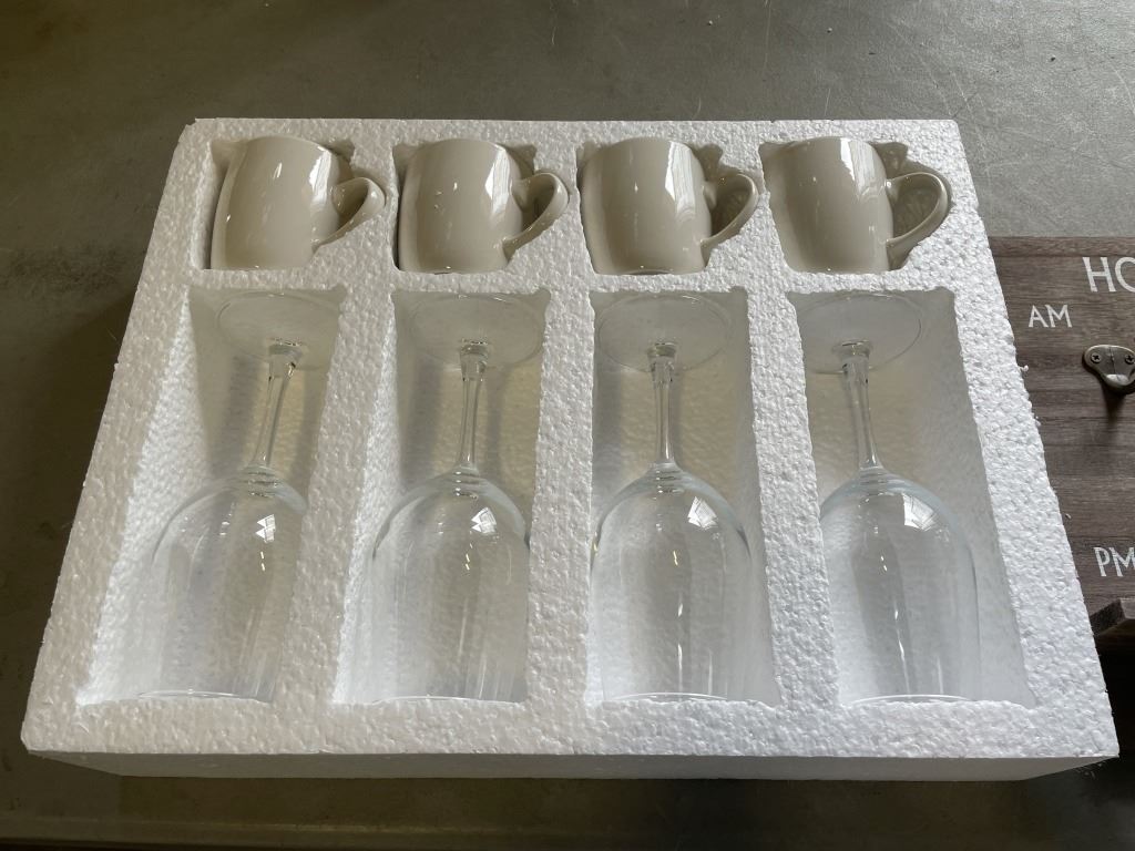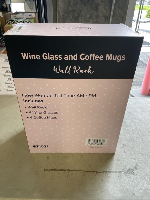 HOW WOMEN TELL TIME WINE GLASS AND COFFEE MUG WALL RACK - INCLUDES 4 WINE GLASSES AND 4 COFFEE MUGS