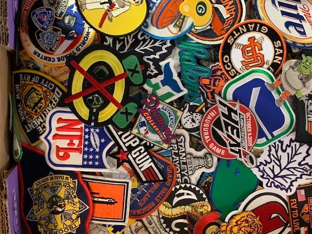 HUGE LOT OF 600-700 VARIOUS PATCHES FROM DIFFERENT CATEGORIES AND SIZES, IRON AND SEW ON- RETAIL $2-25 EACH
