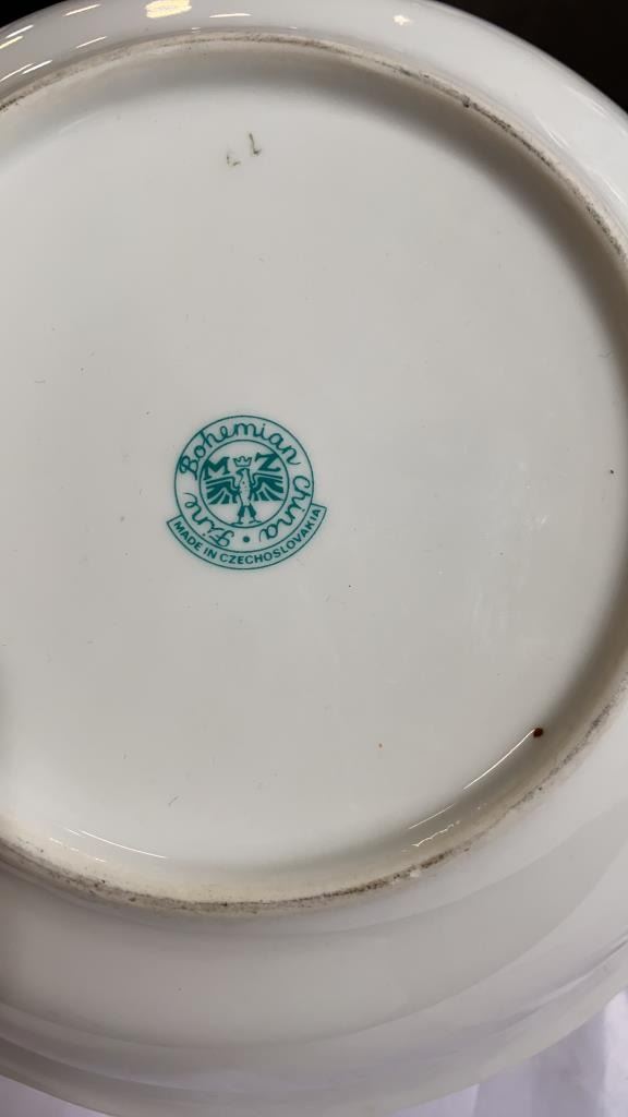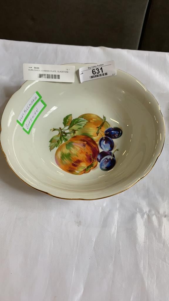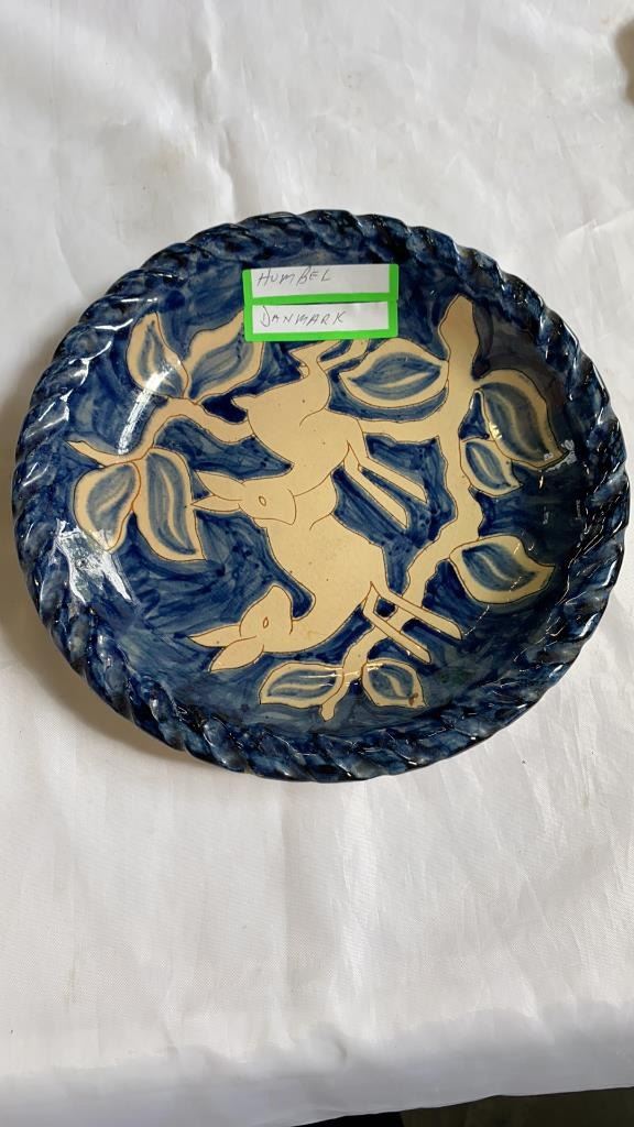 HUMLEBAEK DENMARK PLATE, GLADSTONE BONE CHINA PLATE, BOHEMIAN CZECH BOWL AND WELCOME WALL HANGING AN