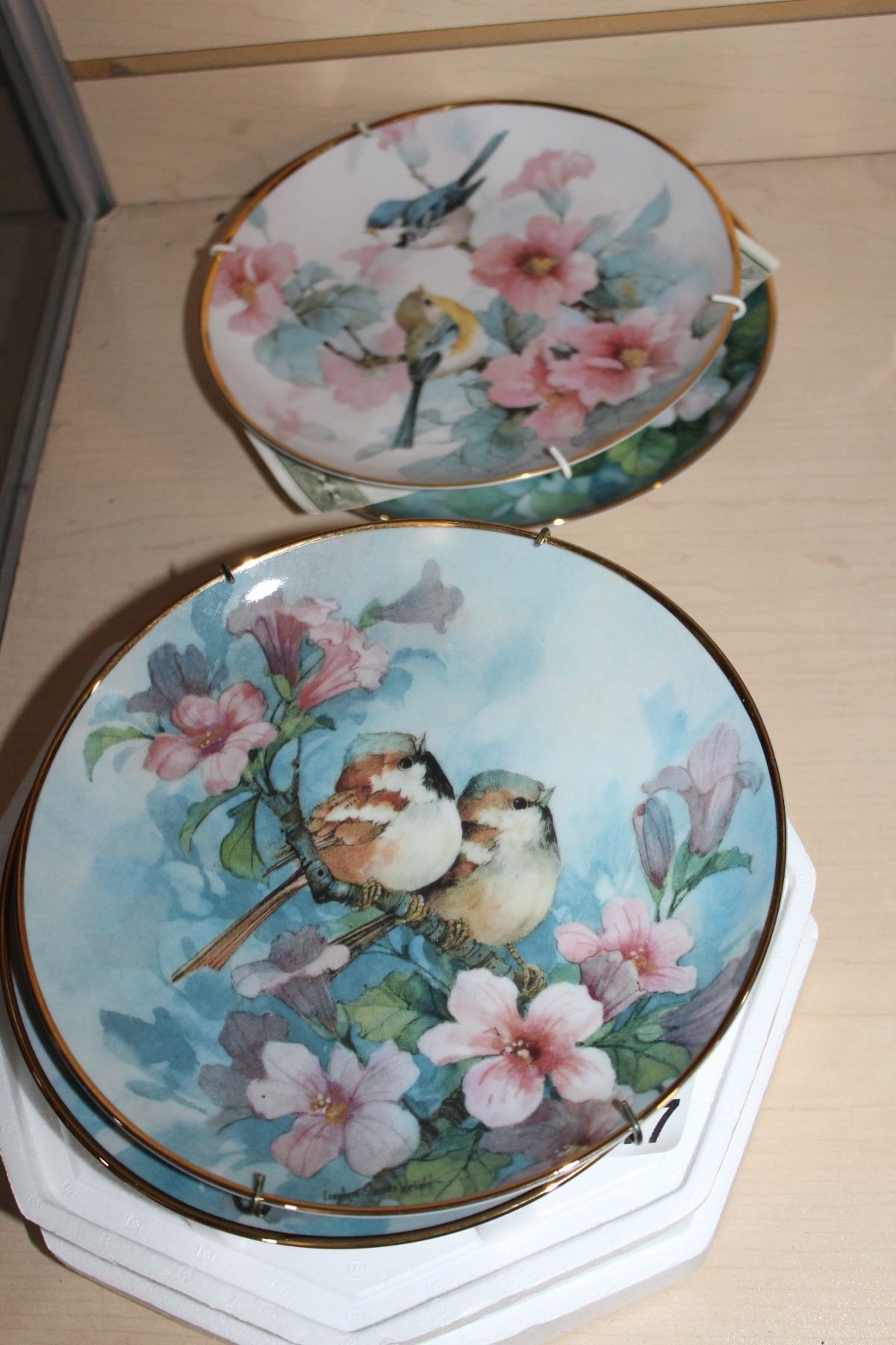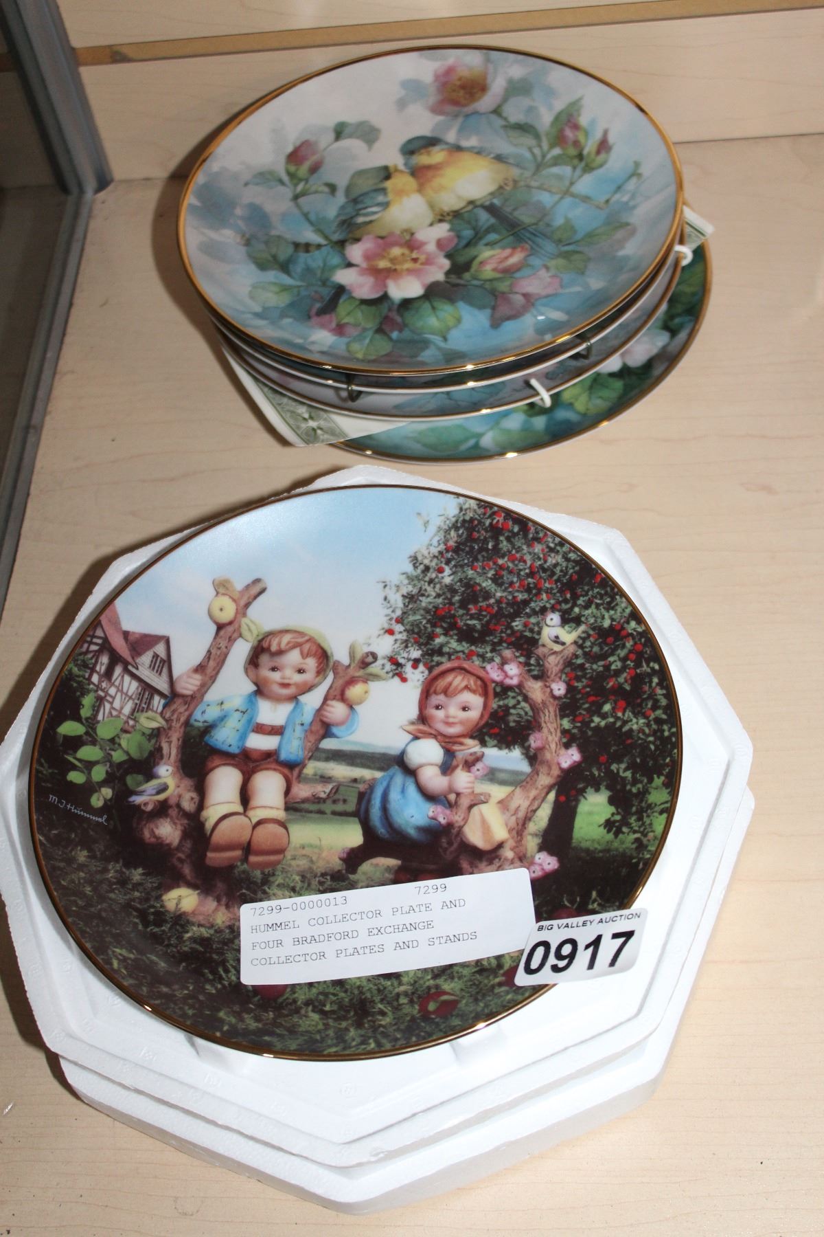 HUMMEL COLLECTOR PLATE AND FOUR BRADFORD EXCHANGE COLLECTOR PLATES AND STANDS