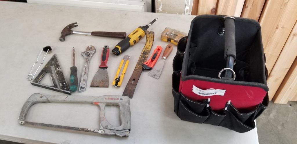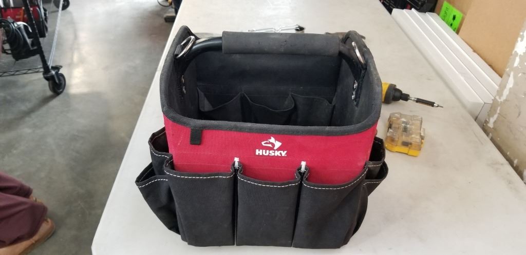 HUSKY TOOL TOTE FULL OF ASSORTED HAND TOOLS