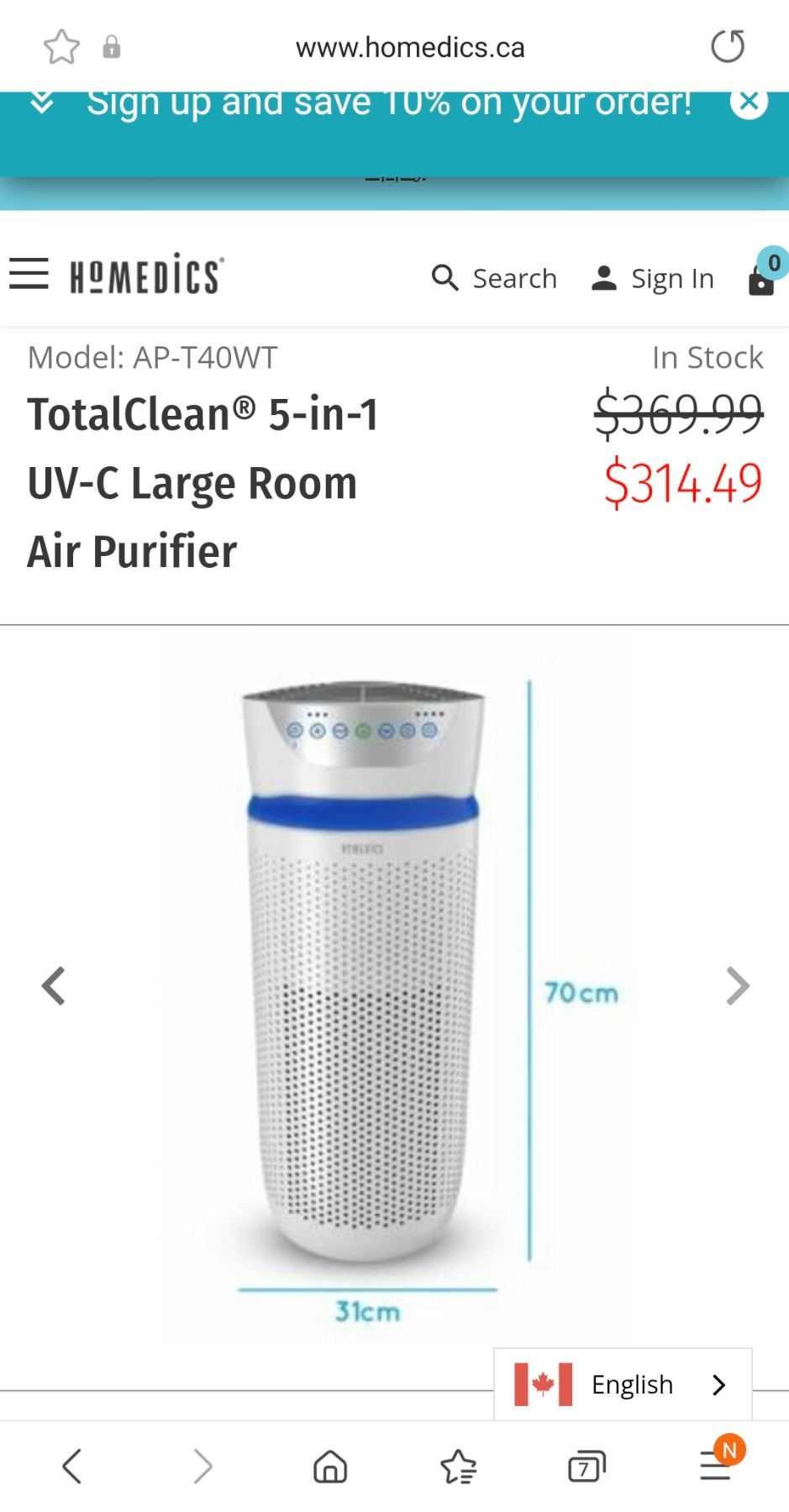 Homedics TotalClean 5-in-1 UV-C Large Room Air Purifier Retail $370 tested and working