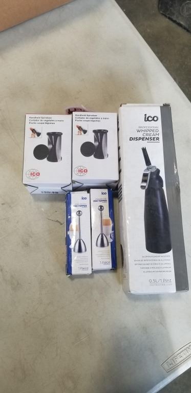 ICO WHIPPED CREAM DISPENSER, 2 HANDHELD SPIRALIZERS AND 2 EGG TOPPERS