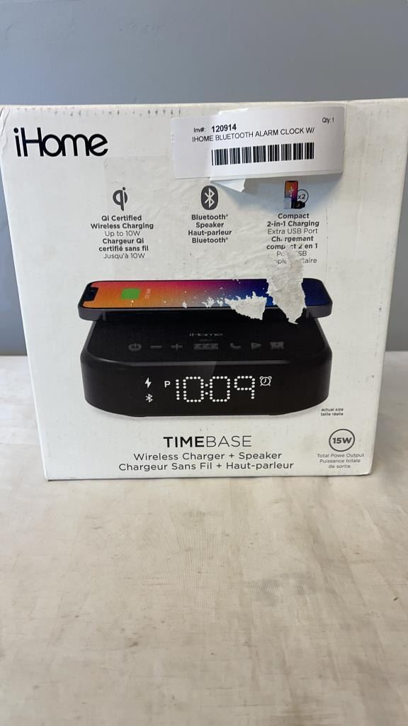 IHOME BLUETOOTH ALARM CLOCK W/ WIRELESS CHARGING AND SPEAKER