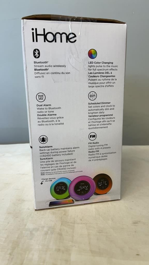 IHOME POWERCLOCK GLOW BLUETOOTH SPEAKER AND USB CHARGING