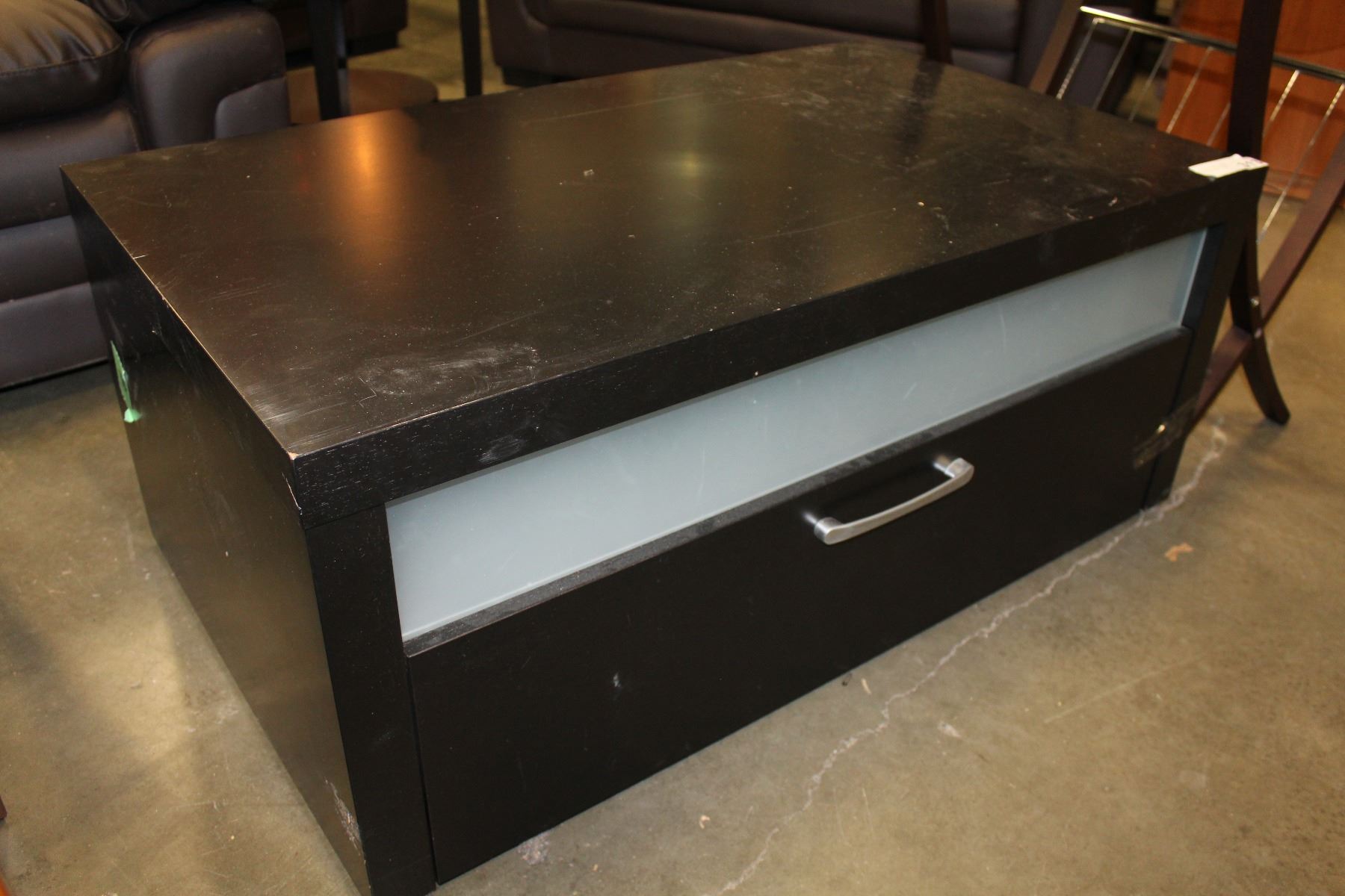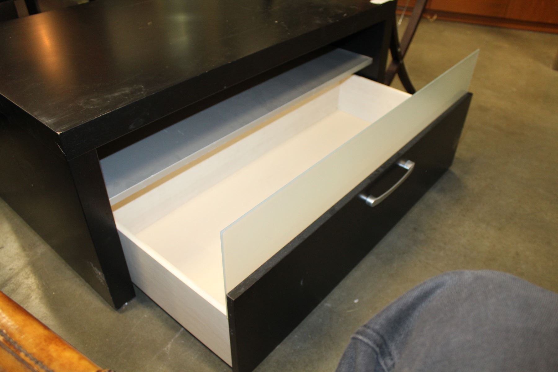 IKEA BLACK AND GLASS ENTERTAINMENT STAND