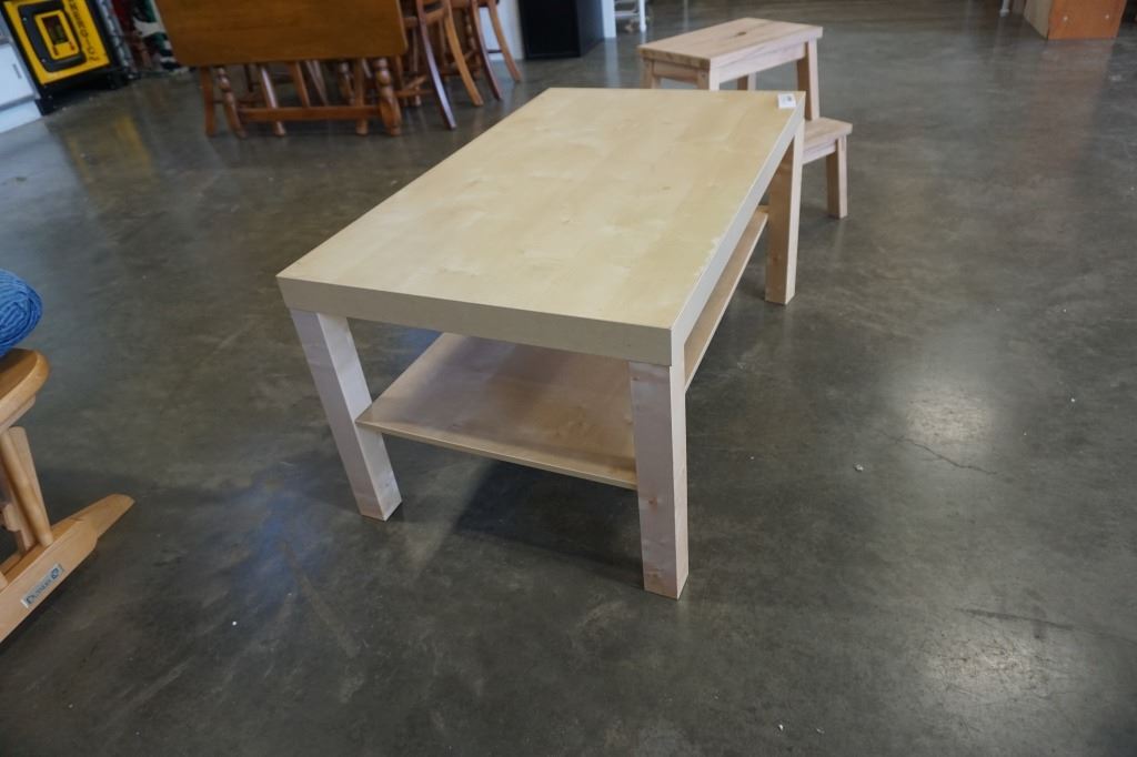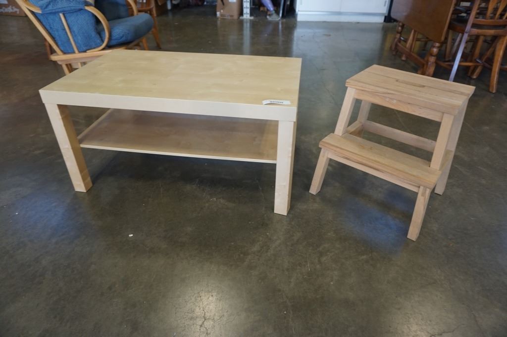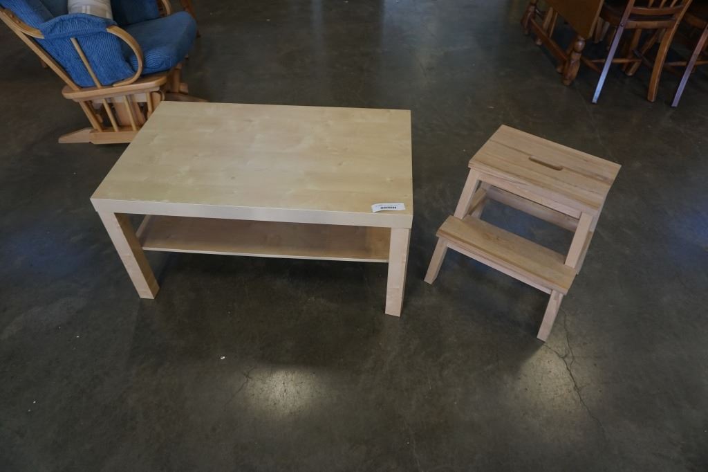 IKEA COFFEE TABLE AND SMALL WOOD STEP
