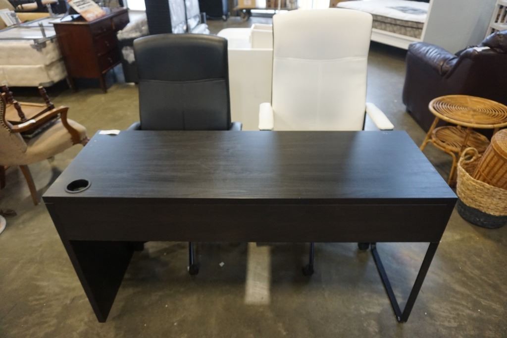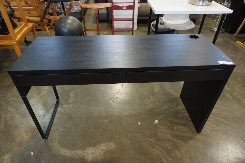 IKEA DESK AND 2 BLACK AND WHITE OFFICE CHAIRS GAS LIFT