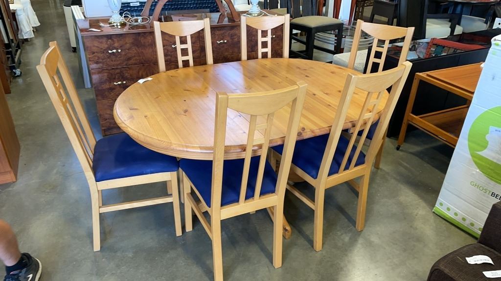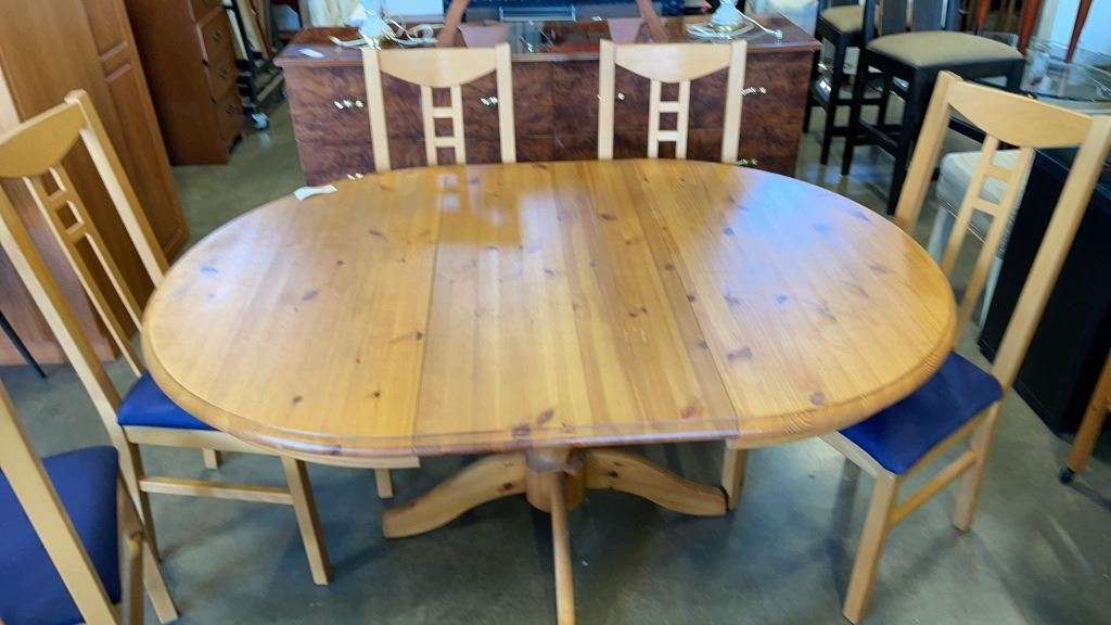 IKEA PEDESTLE DINING TABLE WITH LEAF AND 6 CHAIRS