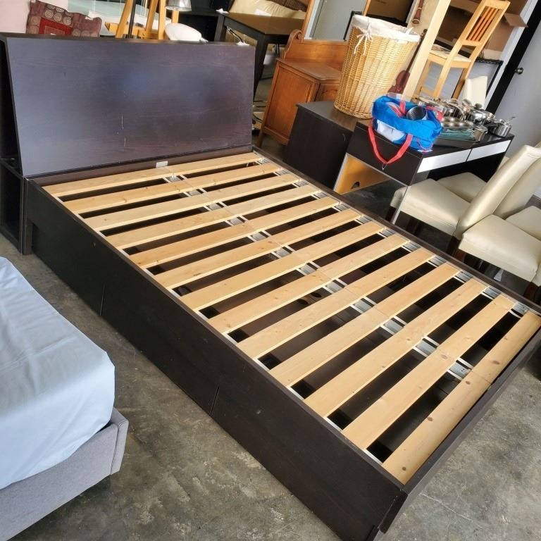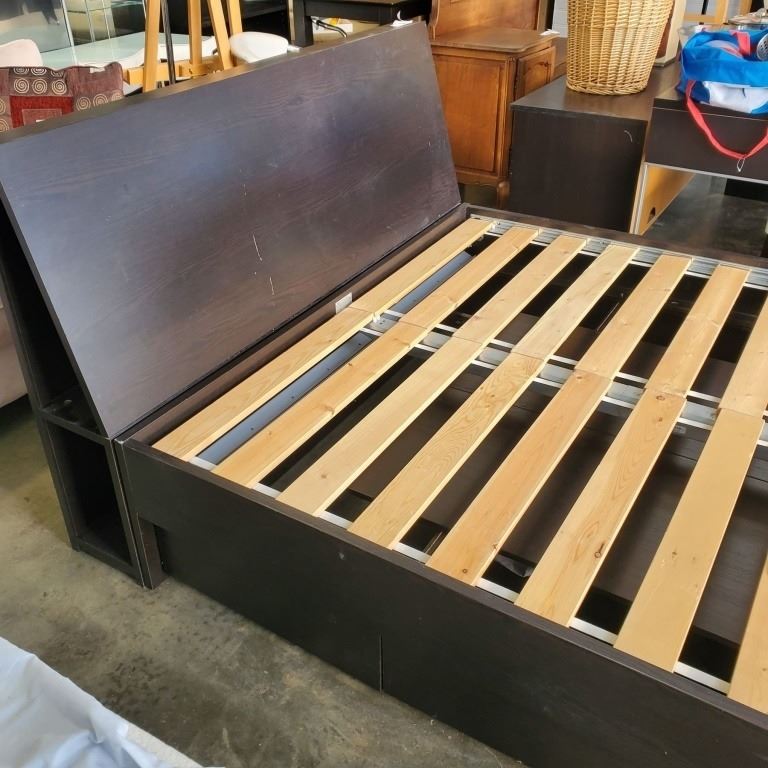 IKEA QUEENSIZE BED WITH STORAGE HEADBOARD AND UNDERBED STORAGE