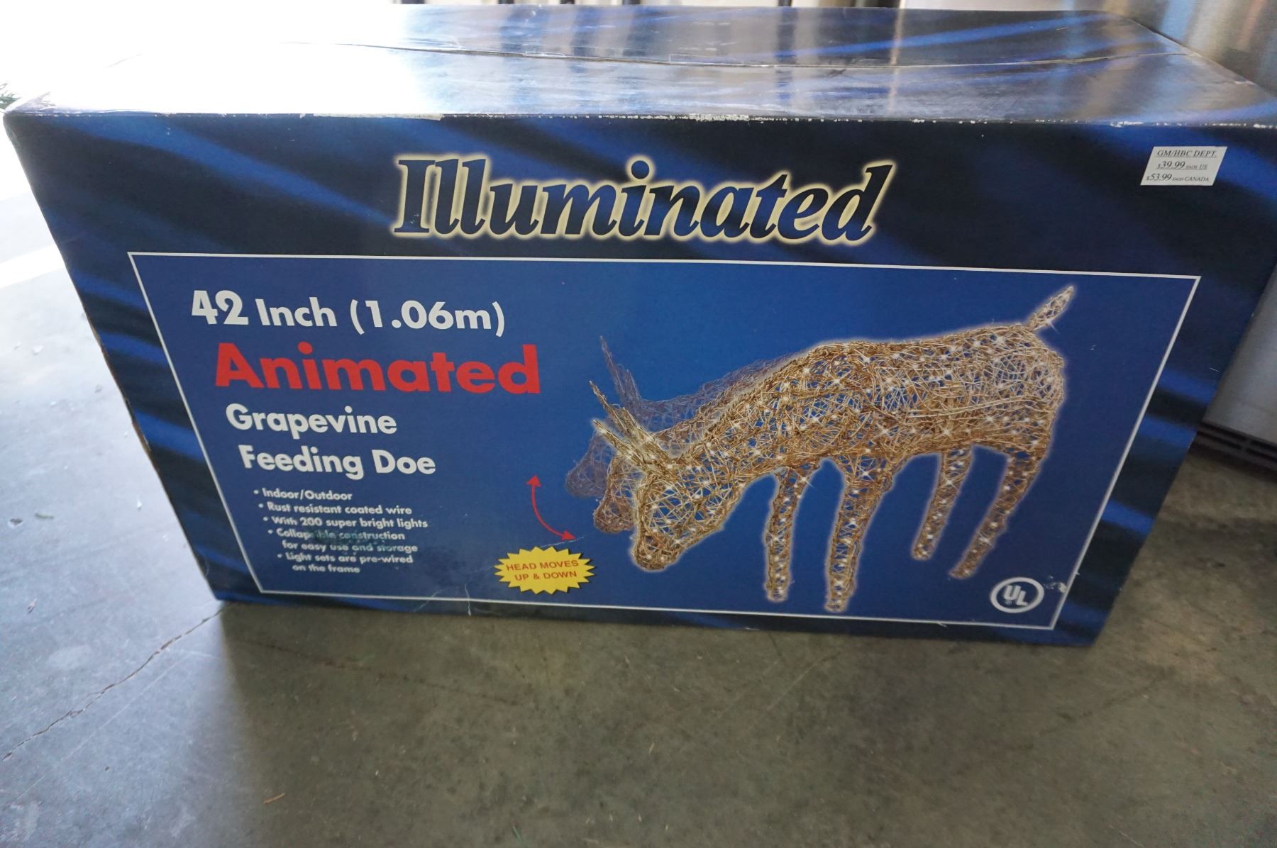 ILLUMINATED 42" ANIMATED GRAPEVINE FEEDING DOE NEW IN BOX