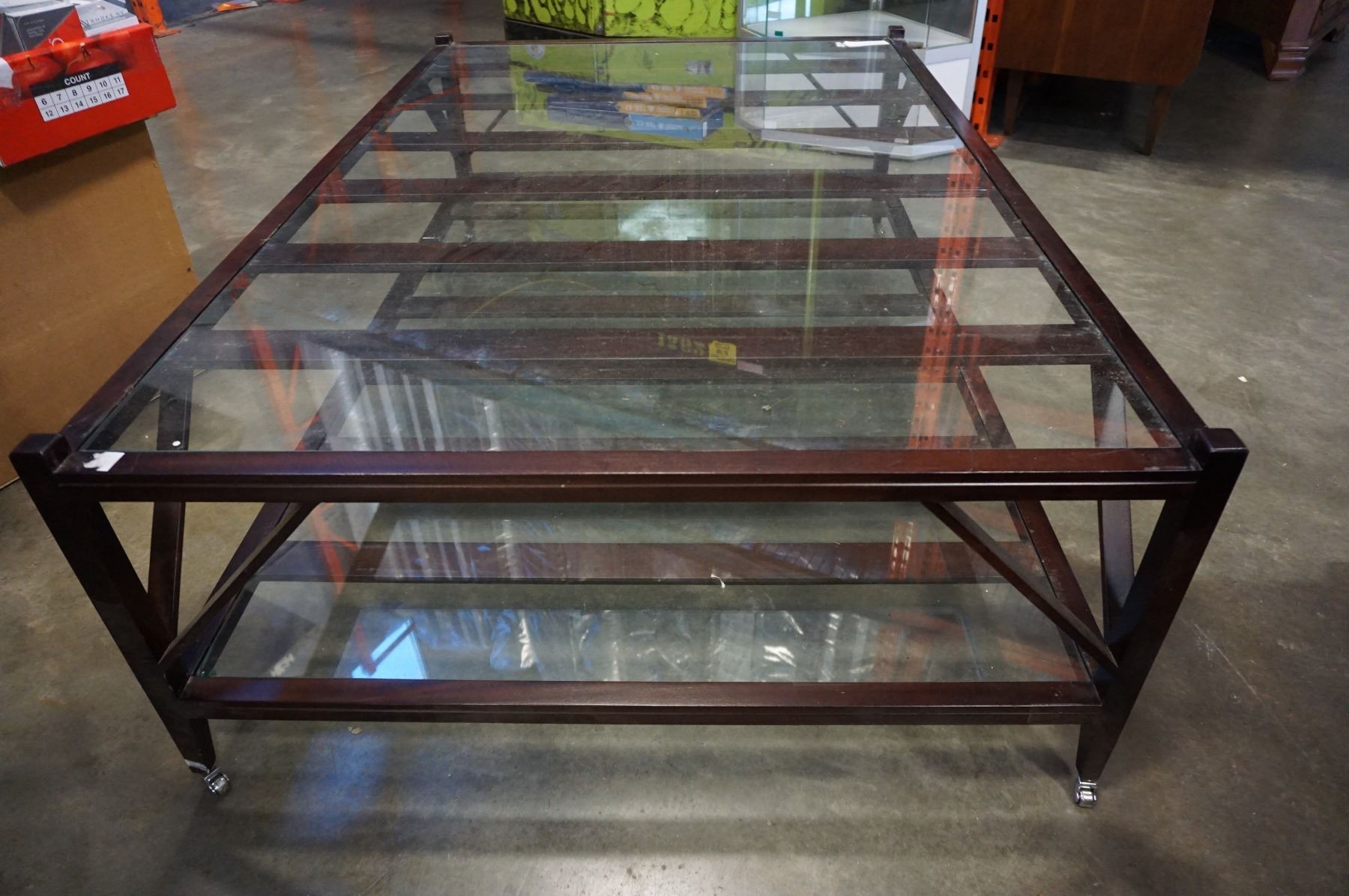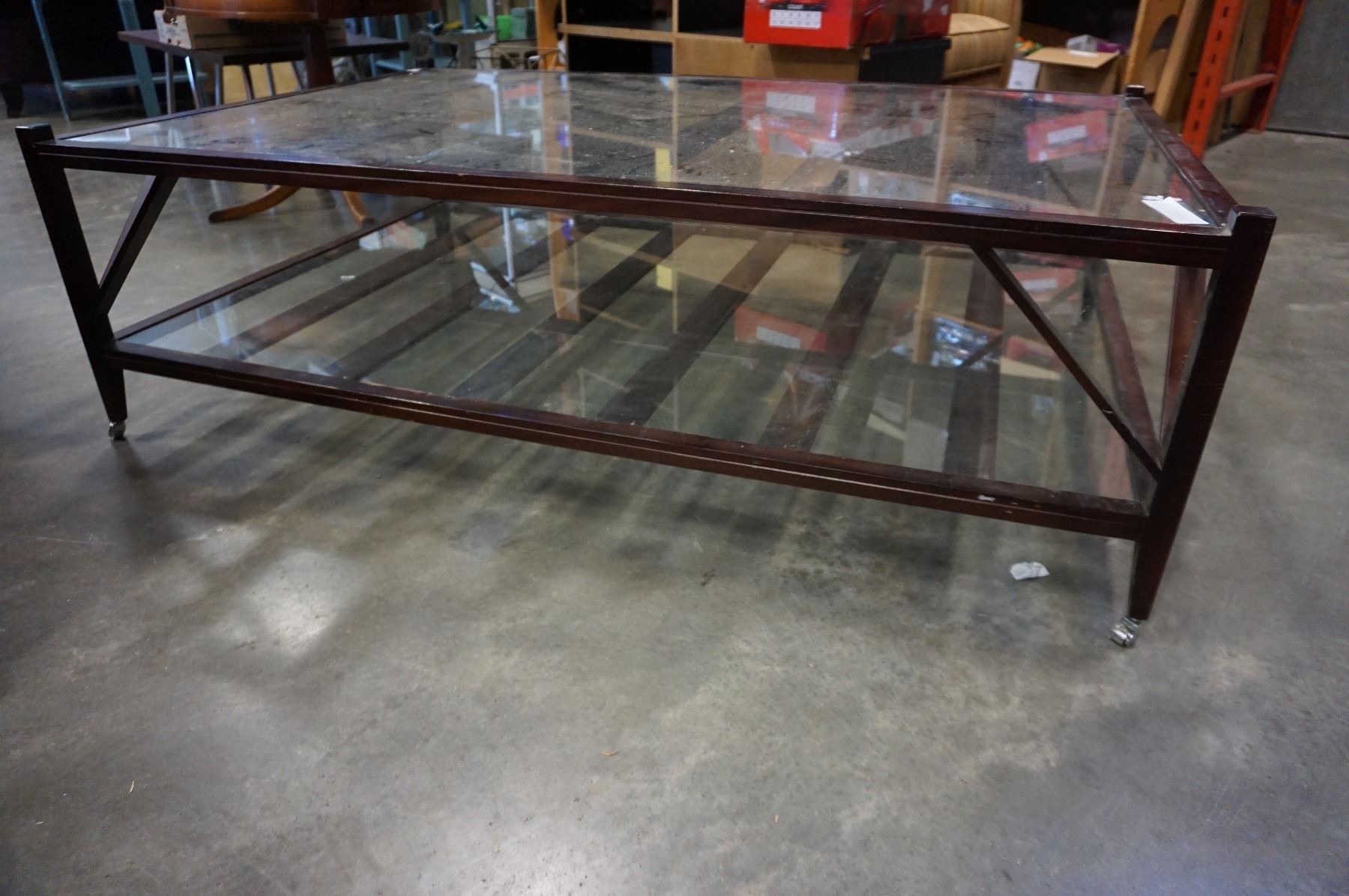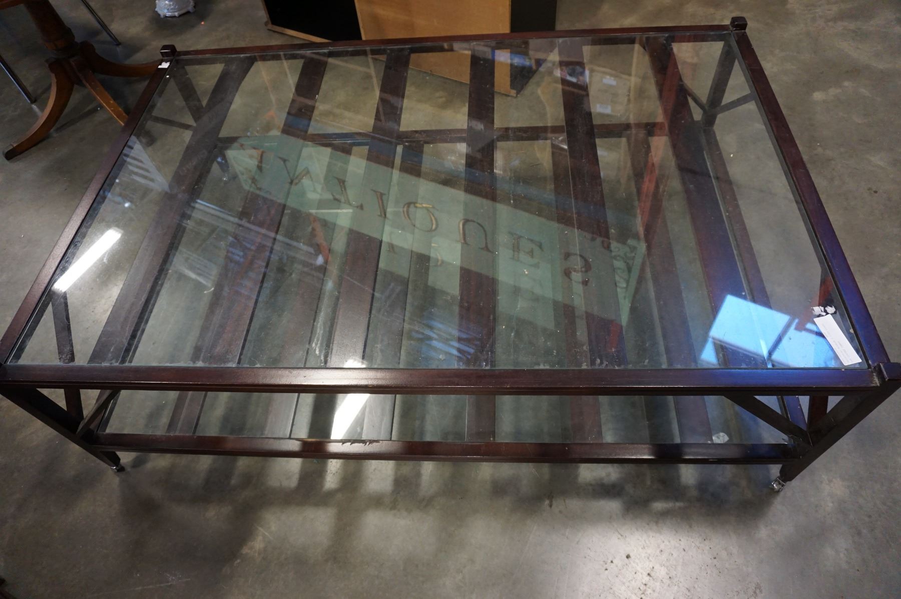 INDUSTRIAL MODERN 2 TIER GLASS TOP COFFEE TABLE