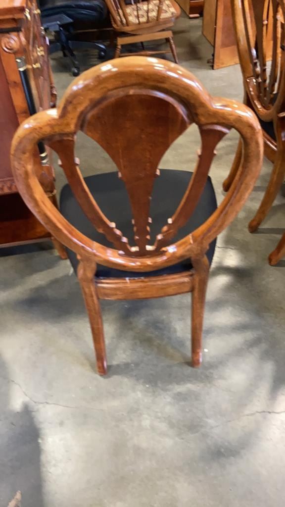 INLAID DINING TABLE WITH 2 LEAFS AND 8 CHAIRS