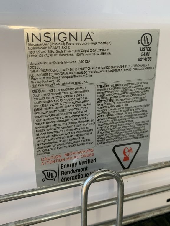 INSIGNIA 1.1 CU FT MICROWAVE - TESTED WORKING, RETAIL $189