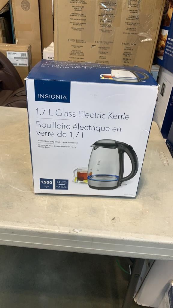 INSIGNIA 1.7L GLASS ELECTRIC KETTLE - TESTED WORKING - RETAIL $49