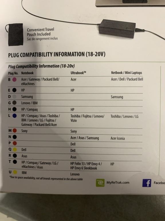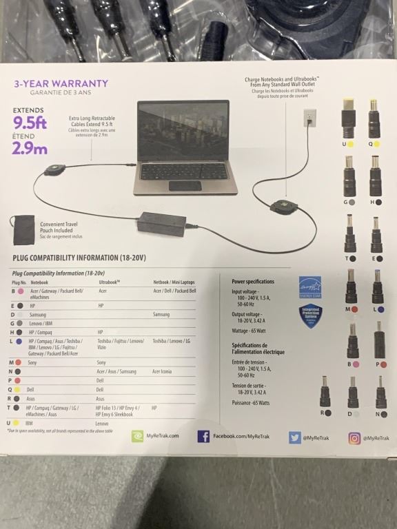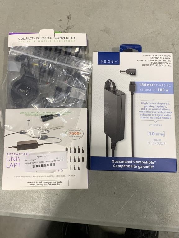 INSIGNIA 180 WATT AND RETRAK 65WATT LAPTOP CHARGERS