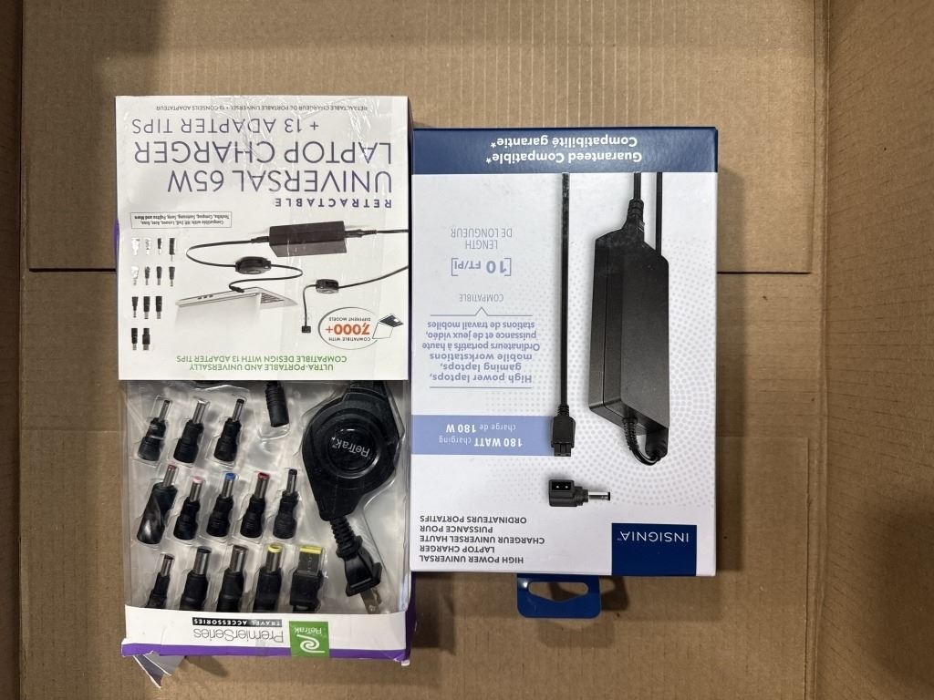 INSIGNIA 180 WATT HIGH POWER UNIVERSAL LAPTOP CHARGER AND RETRAK 65W UNIVERSAL RETRACTABLE LAPTOP CHARGER