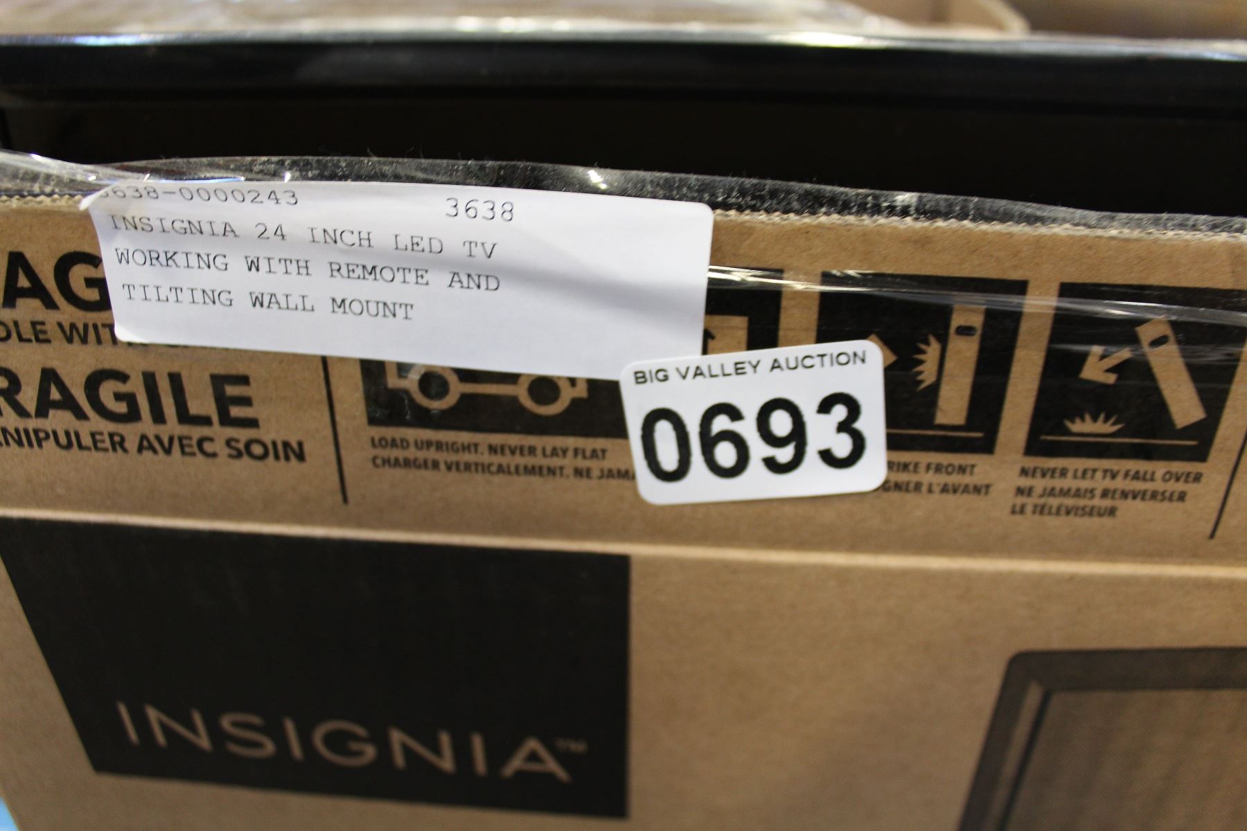 INSIGNIA 24 INCH LED TV WORKING WITH REMOTE AND TILTING WALL MOUNT