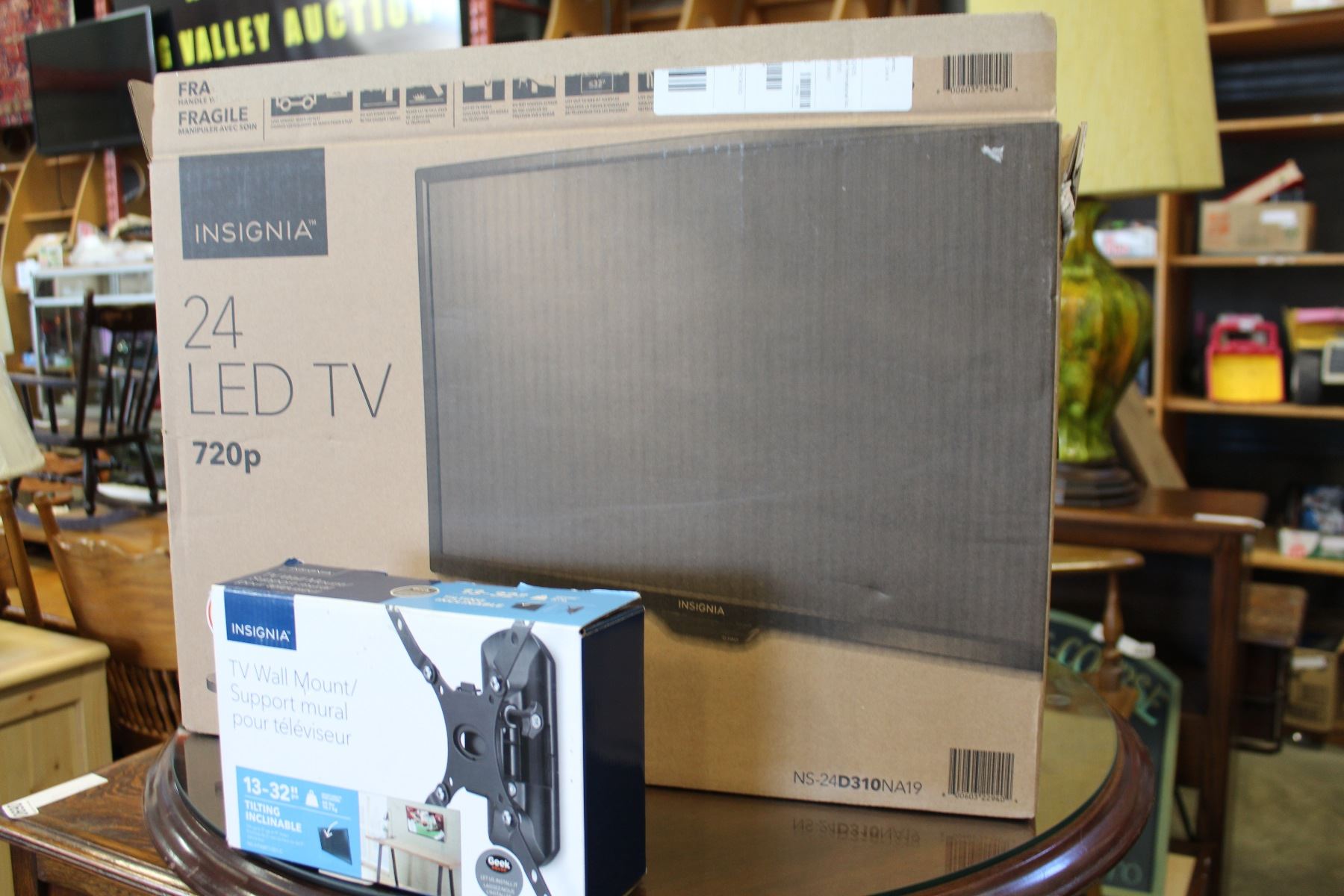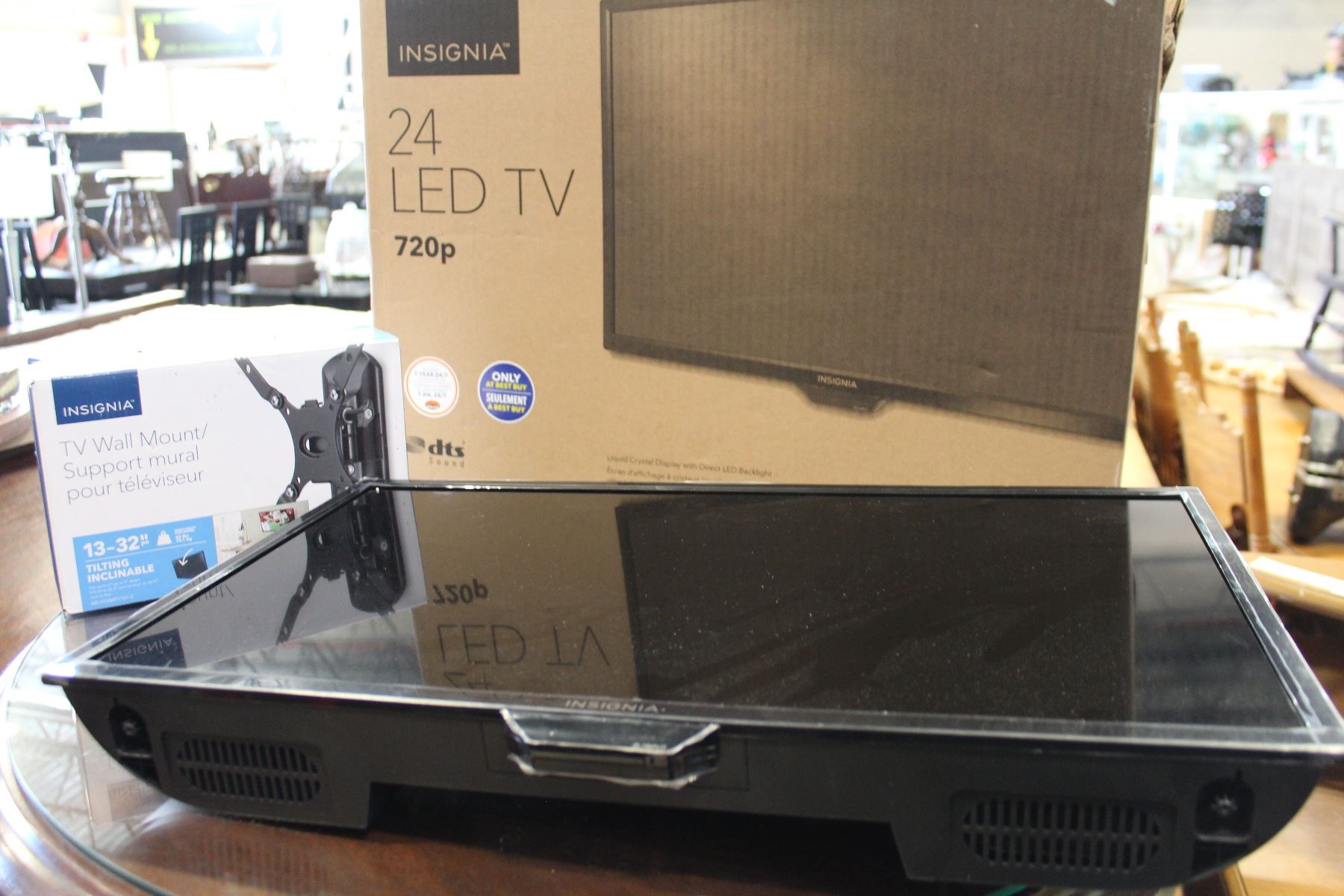 INSIGNIA 24 INCH TV WORKING WITH TILTING WALL MOUNT AND REMOTE