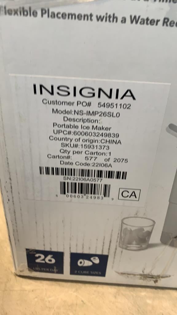 INSIGNIA 26LB PORTABLE ICE MAKER - TESTED WORKING - RETAIL $199