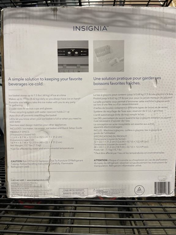 INSIGNIA 26LB PORTABLE ICE MAKER - TESTED WORKING, RETAIL $199