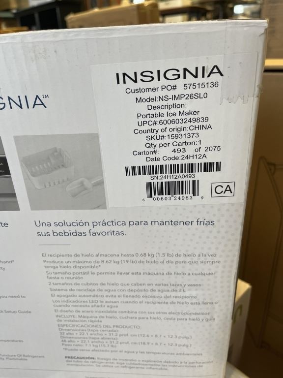 INSIGNIA 26LB PORTABLE ICE MAKER - TESTED WORKING, RETAIL $299