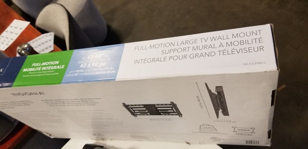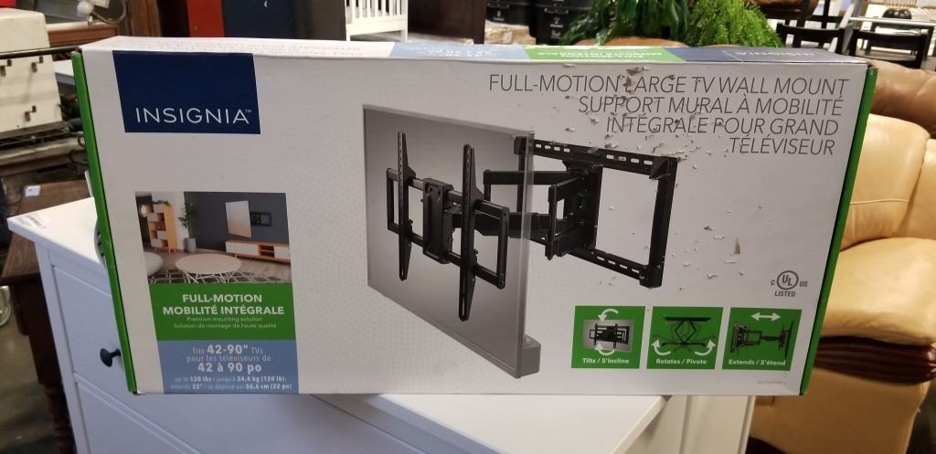 INSIGNIA 42-90 INCH LARGE FULL MOTION TV WALL MOUNT, UP TO 120LBS